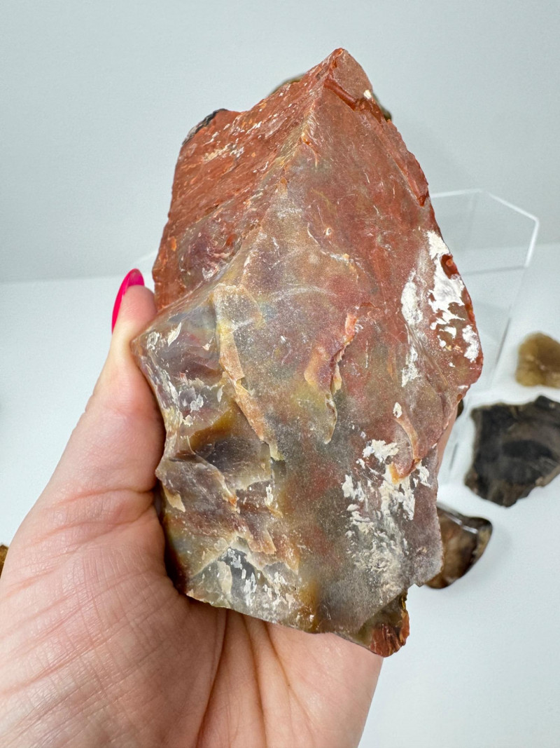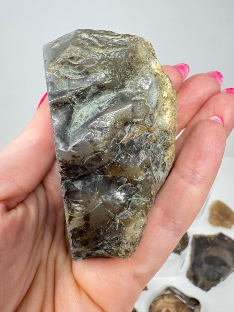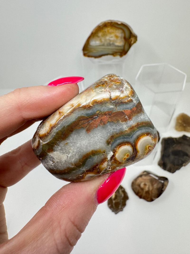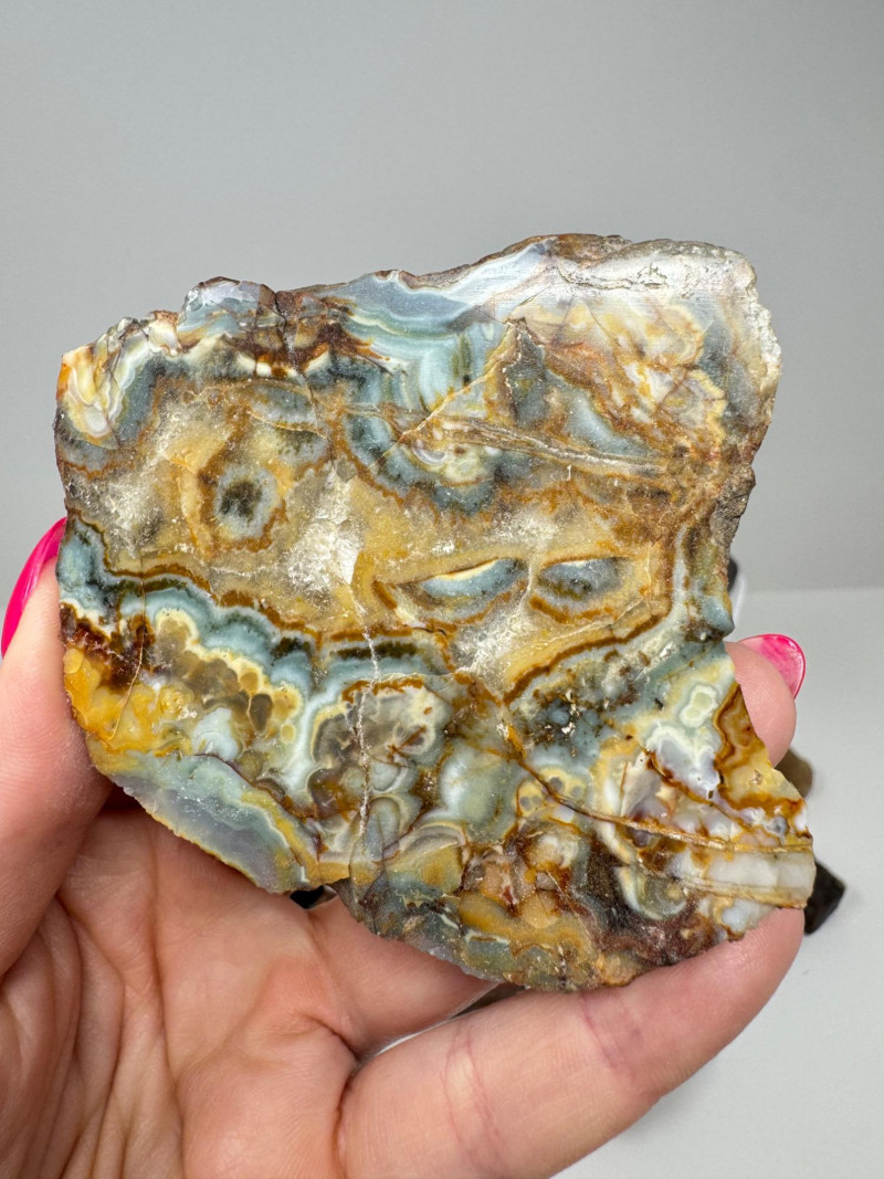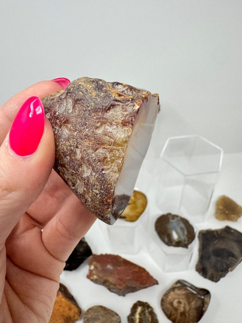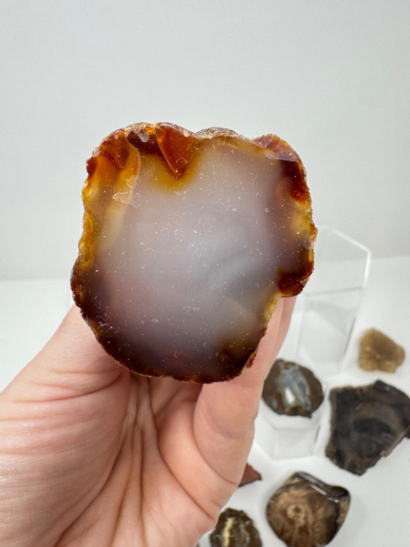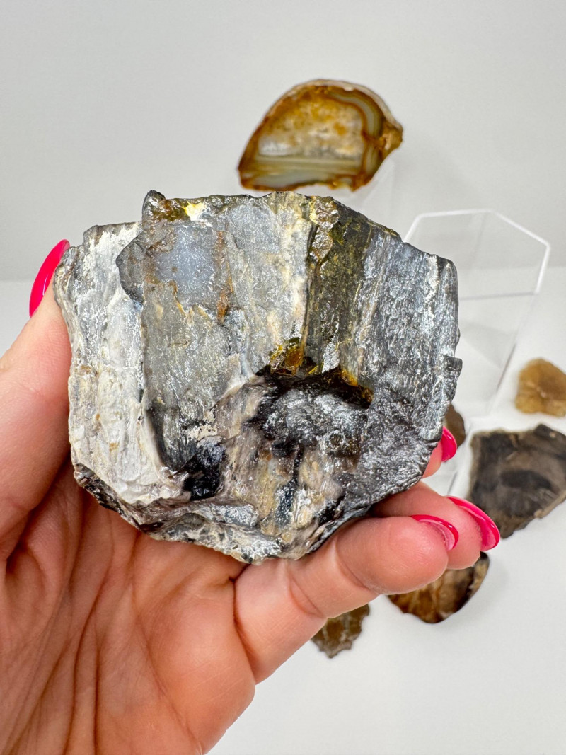 Natural Agate Slices & Rugged Stone Fossil Specimens - Set 2. Please note: These mineral specimens have not been professionally tested or identified. They are offered "as-is" based on visual assessment. Bid accordingly.