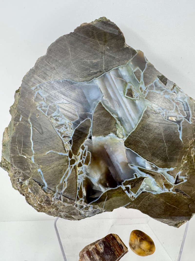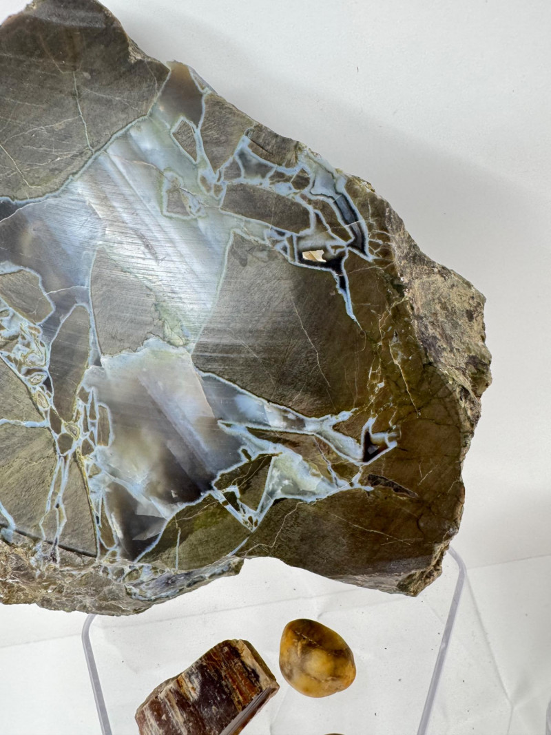 Lot # 10 - 16-PieceMineral Set w/ Obsidian Slab, Tiger’s Eye & Amber +