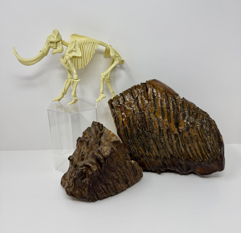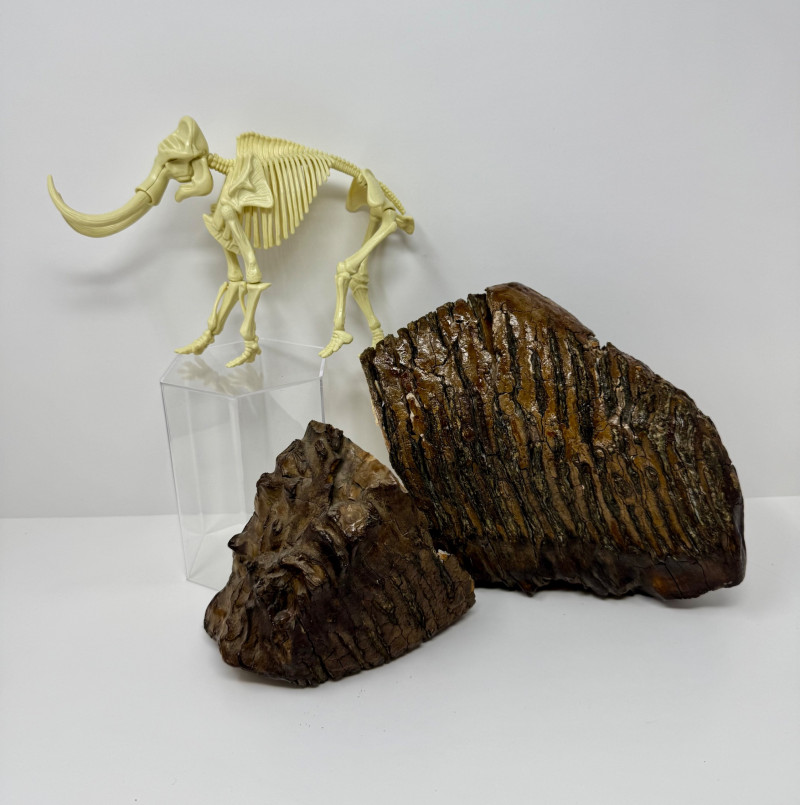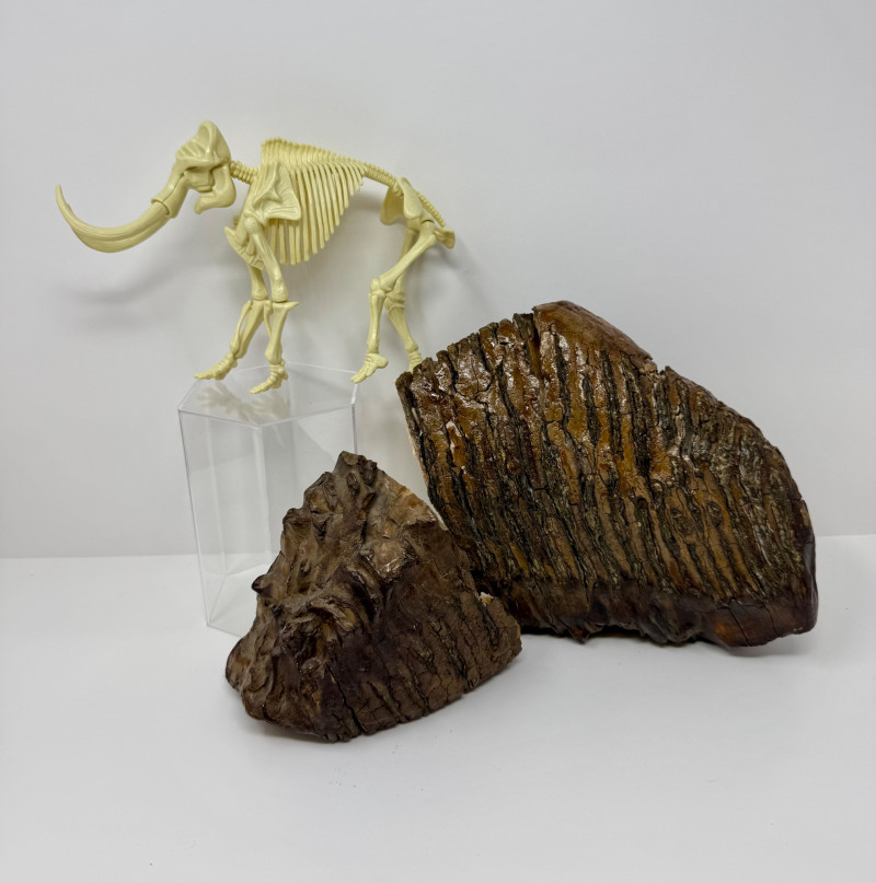 Lot # 11 - Ice Age Fossil Teeth – Likely Woolly Mammoth + Display Model