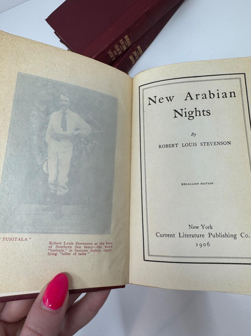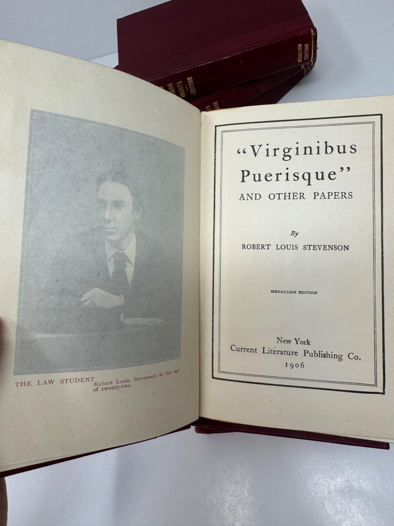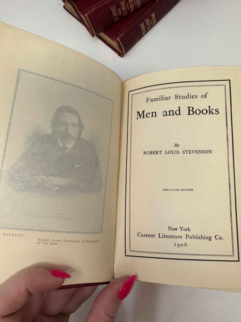 1906 Medallion Edition – Robert Louis Stevenson 7-Volume Antique Set. Treasure Island Strange Case of Dr. Jekyll and Mr. Hyde The New Arabian Nights The Master of Ballantrae Virginibus Puerisque and Other Papers Men and Books Familiar Studies