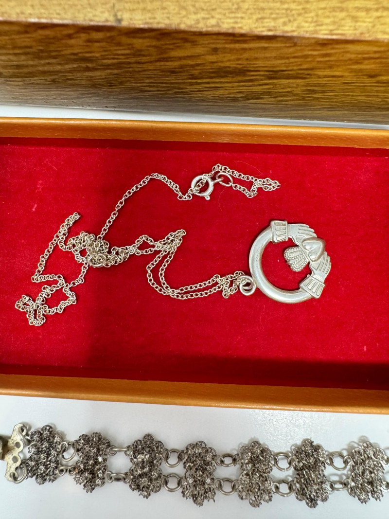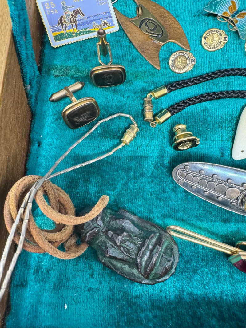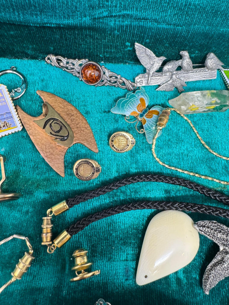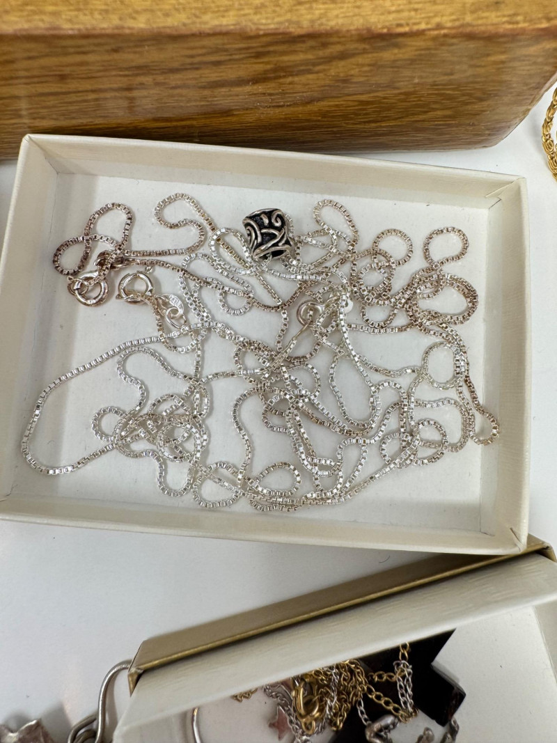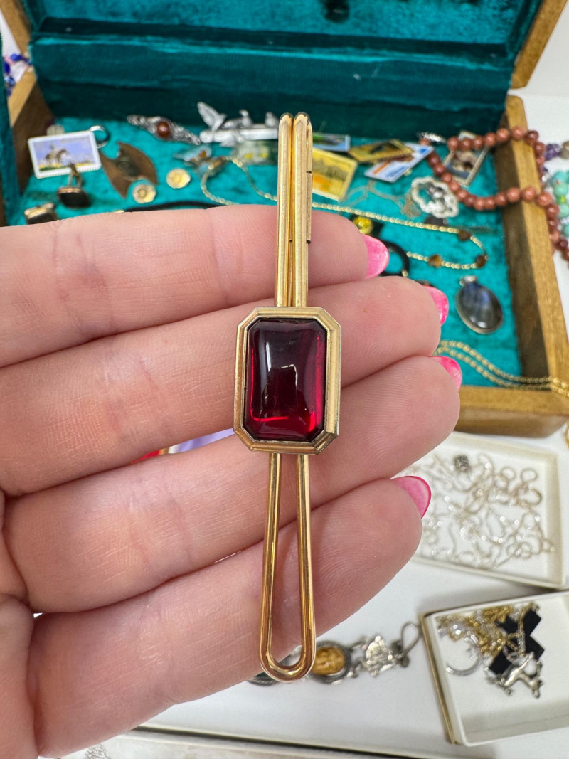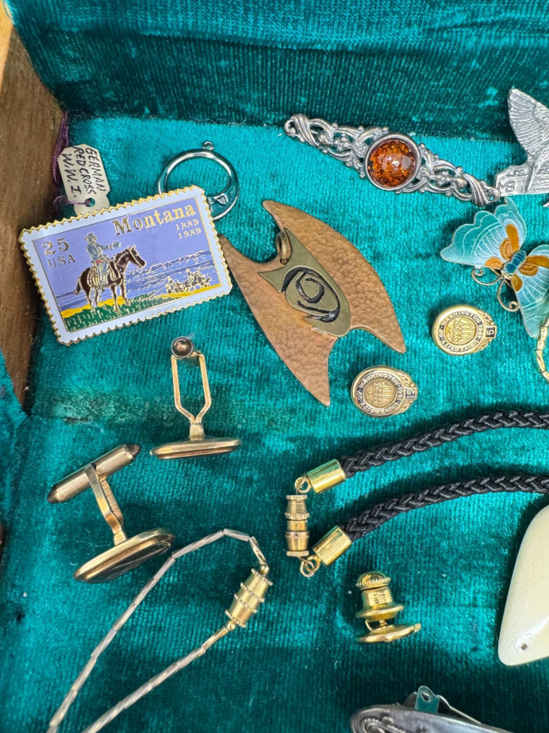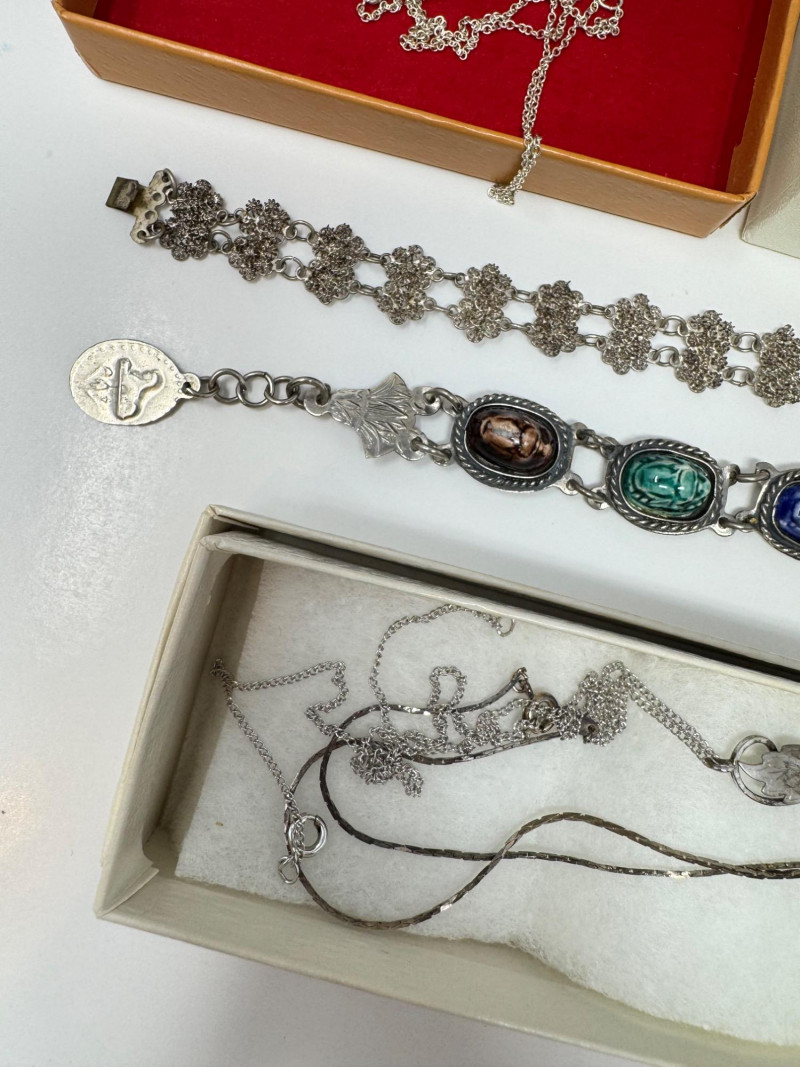 Eclectic Jewelry Box Treasure Trove – Sterling, Stones & Costume Finds. Disclaimer: We do not test the metals of the items listed for auction. By placing a bid, you acknowledge and agree that you are purchasing the item "as is" and without any guarantee of metal quality. We do not offer refunds based on metal content or purity.
