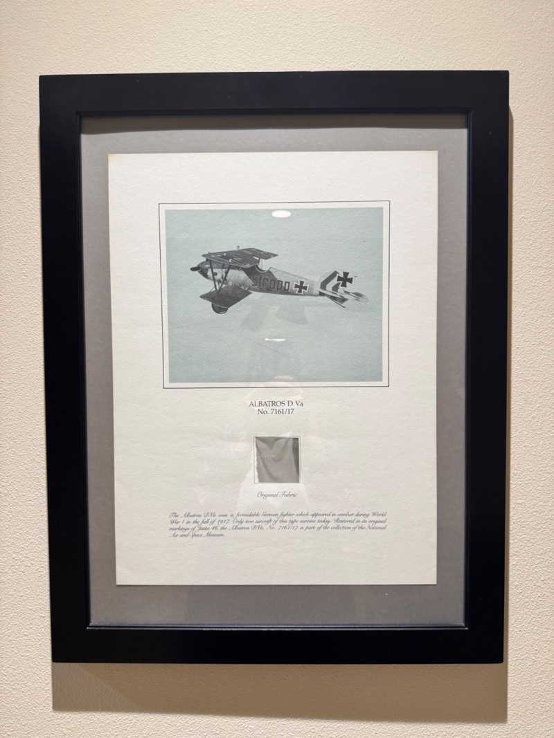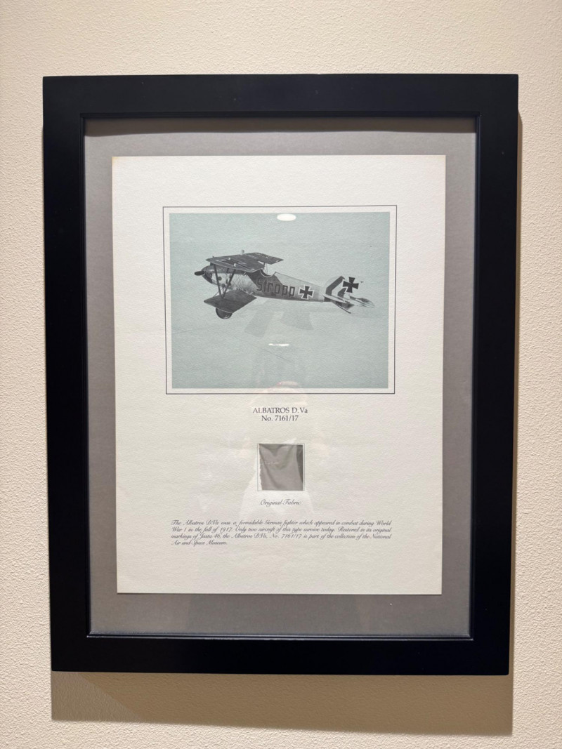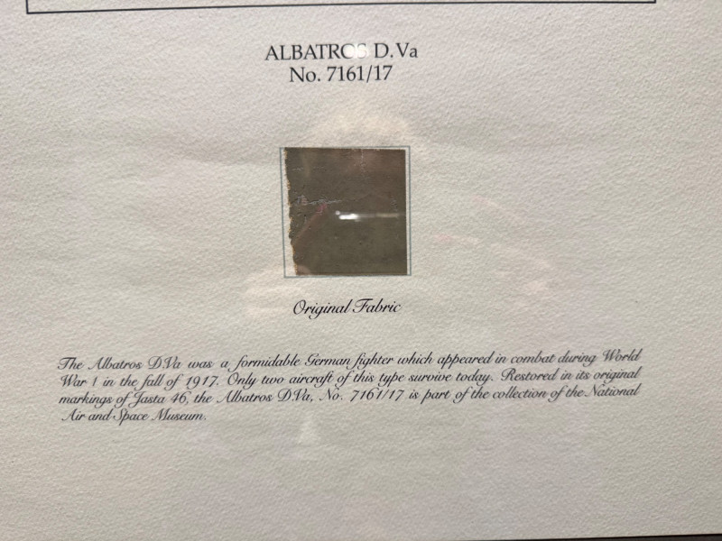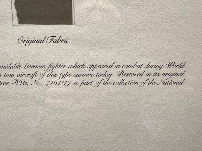 WWI Albatros D.Va Fighter Relic Display w/ Original Aircraft Fabric. 21 x 27”