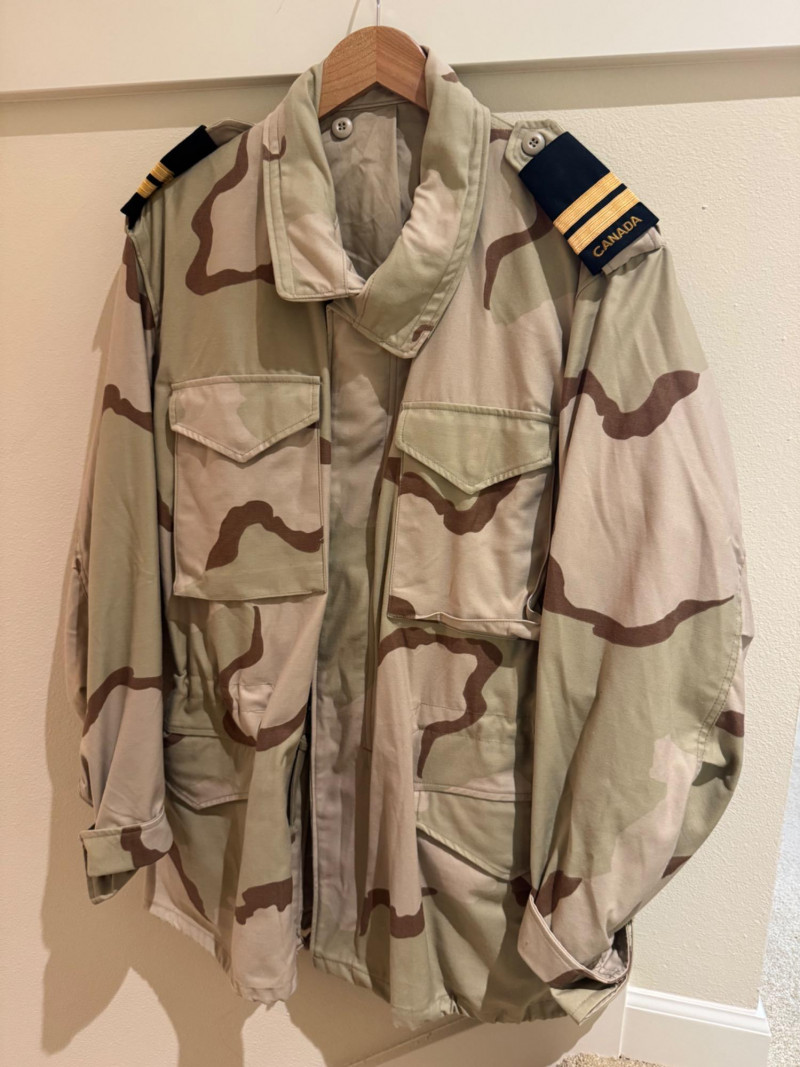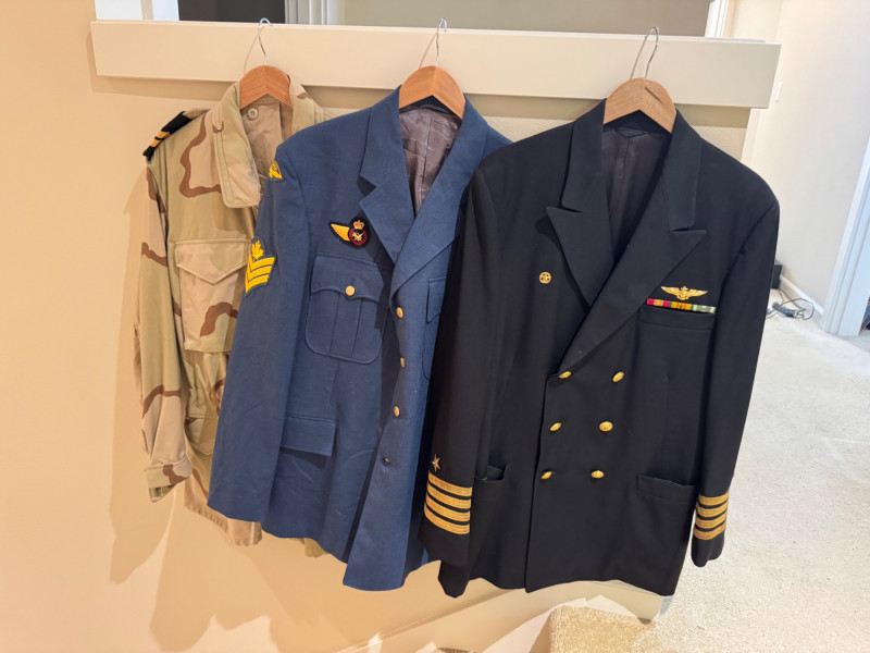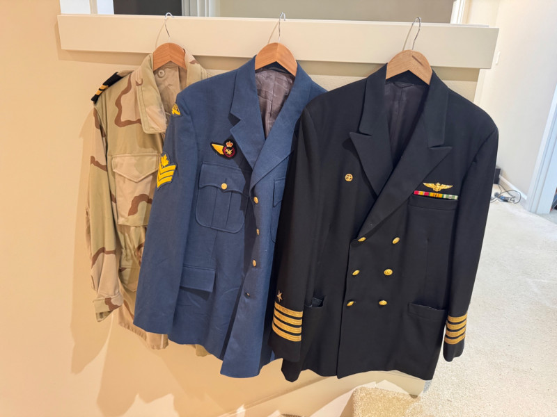 2 Canadian Military Air Force Uniforms + Desert Camouflage Jacket.