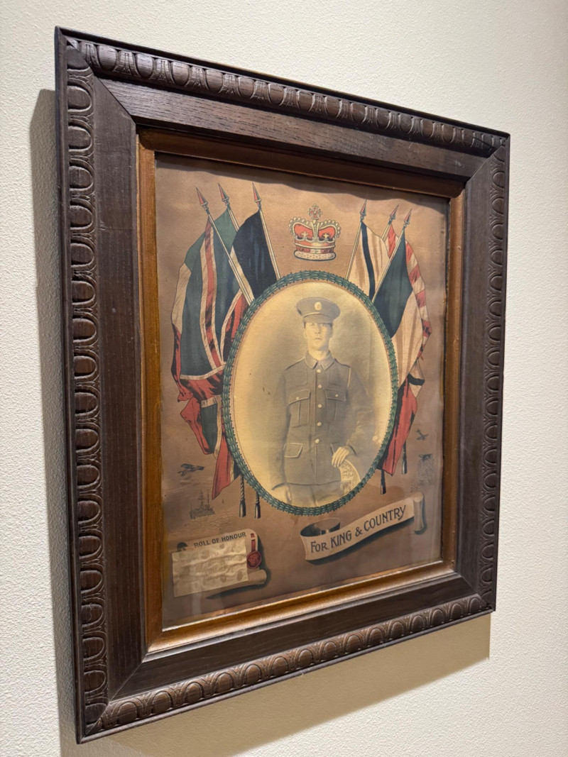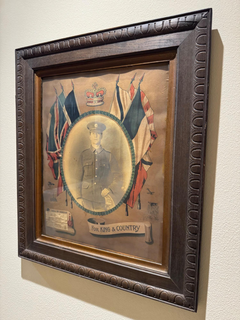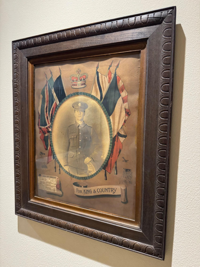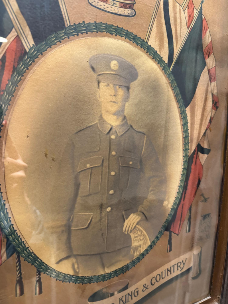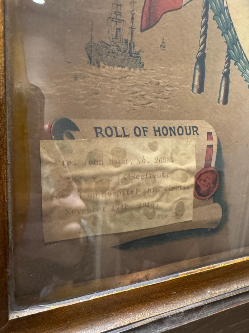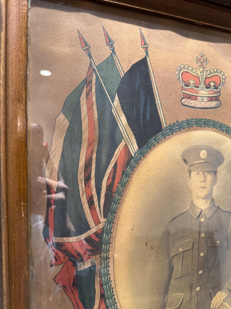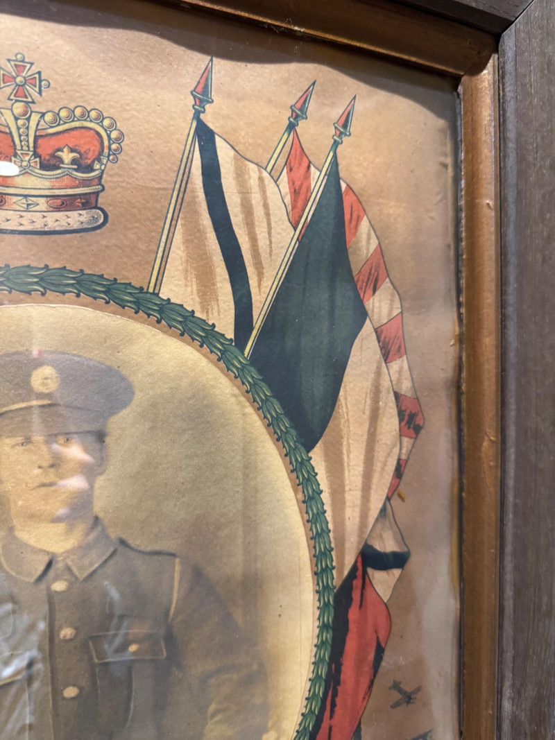 Antique WWI Memorial Portrait of Pte. John Mann (1915) Roll of Honour. 22.5” x 27”