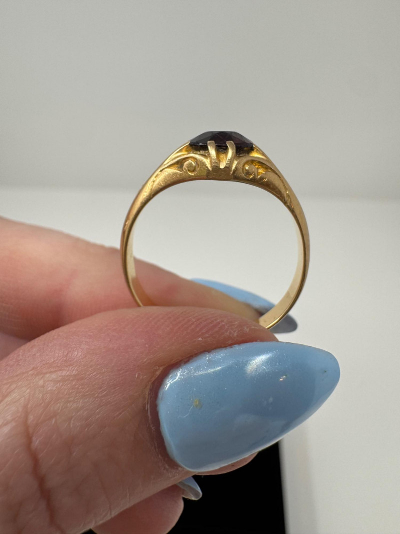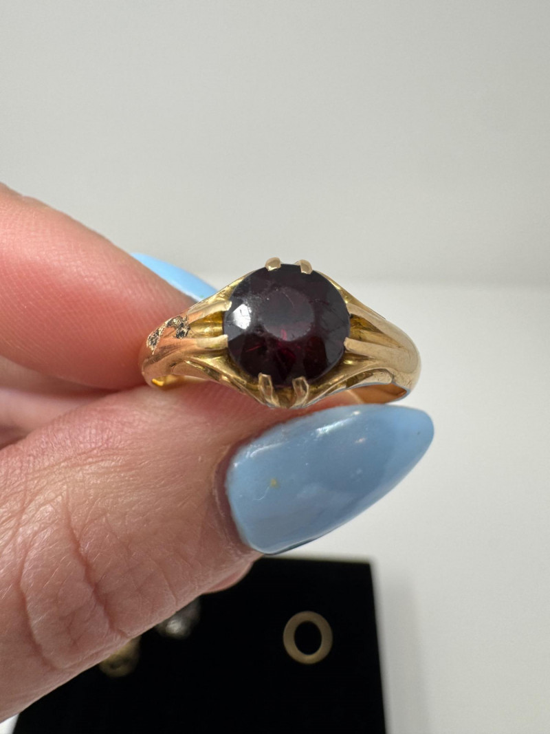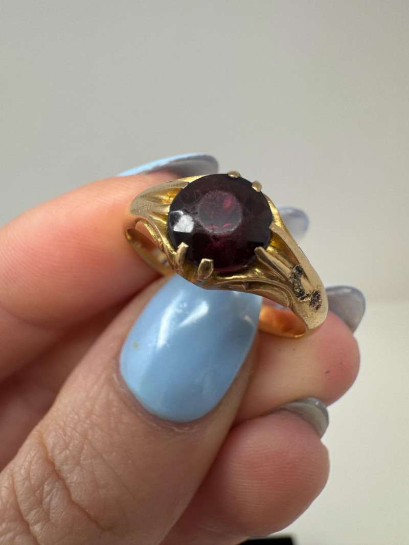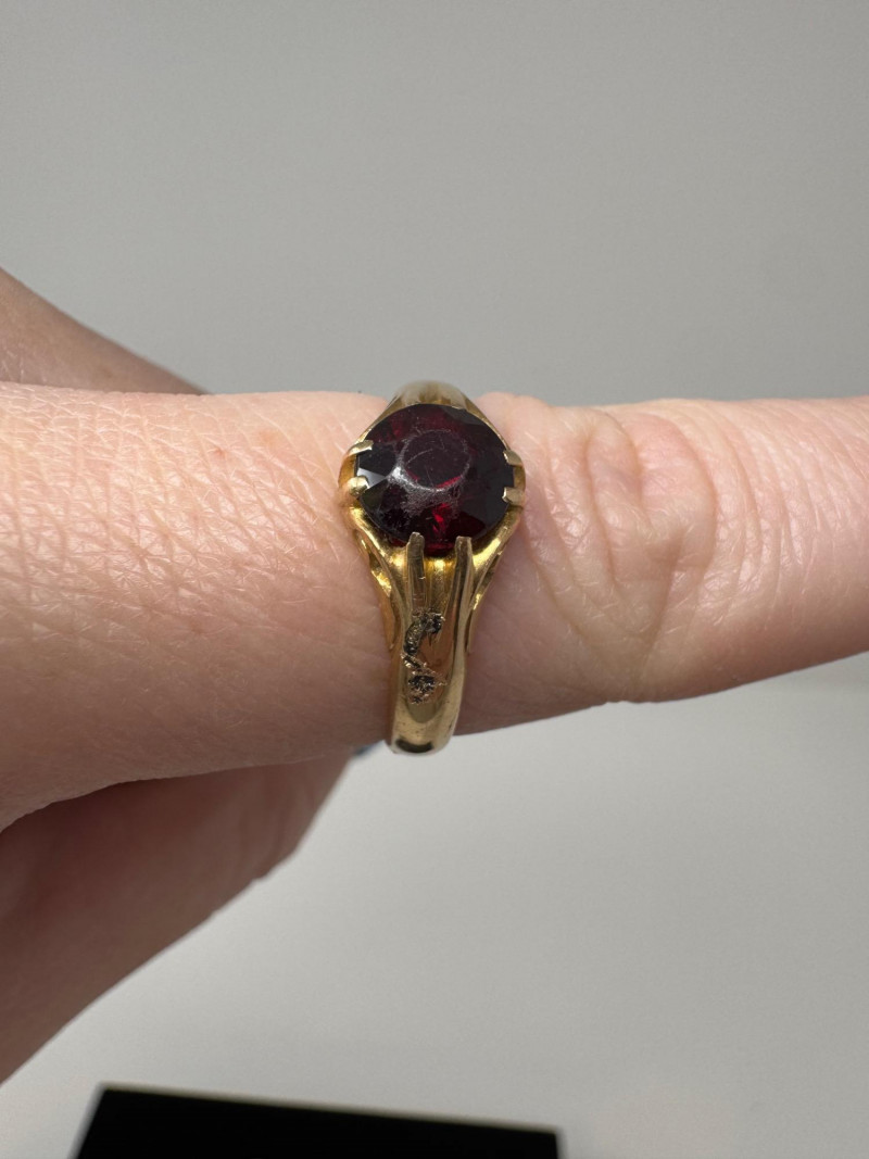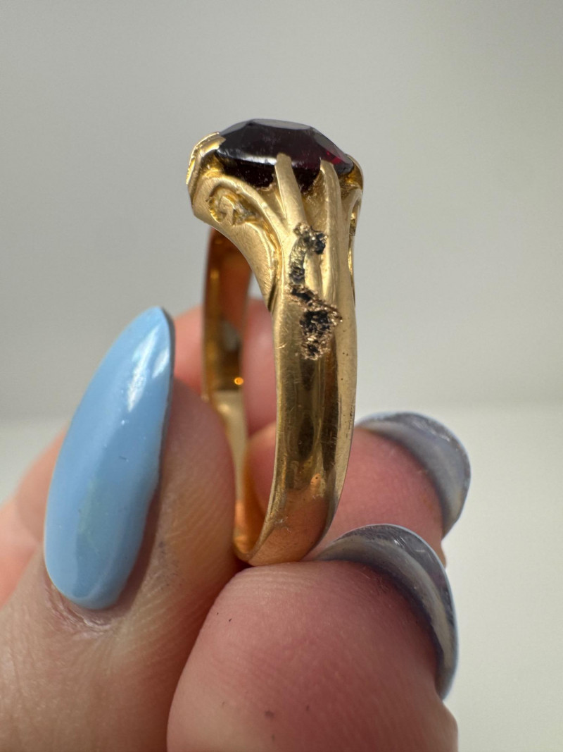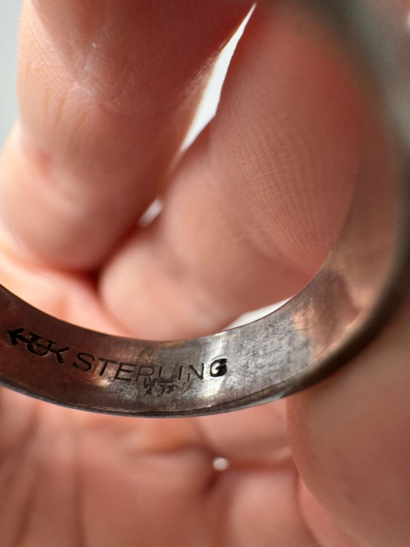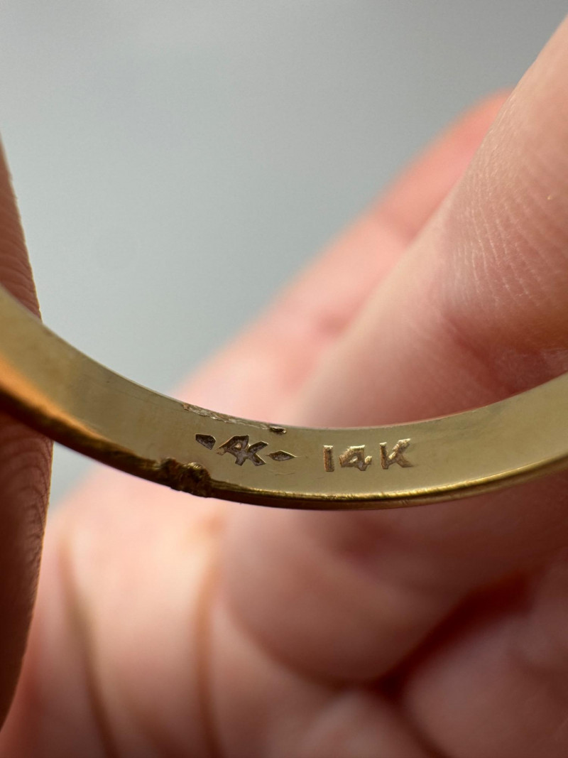 Mixed Ring Lot – 10K, 14K Gold, Sterling – 25.1g Total Weight. 10K Gold Gothic/Initial Ring – Approx. 5.25g, black enamel with gold "S" and eagle crest motif Sterling Silver U.S. Navy Ring – Bold insignia with anchor and “USN,” approx. 11.76g Mystery Gold-Tone Ring w/ Red Stone – No gold mark, deep garnet-colored stone, approx. 4.93g 14K Gold Wedding Band – Classic style, marked, approx. 3.15g Total Weight: 25.1 grams (mixed metals)