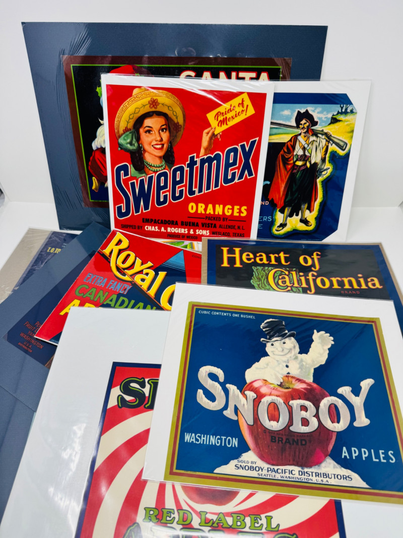 #1: 13pc New Old Stock Vintage Fruit Crate Labels – Snoboy, Sweetmex + And More.Common Label Examples: