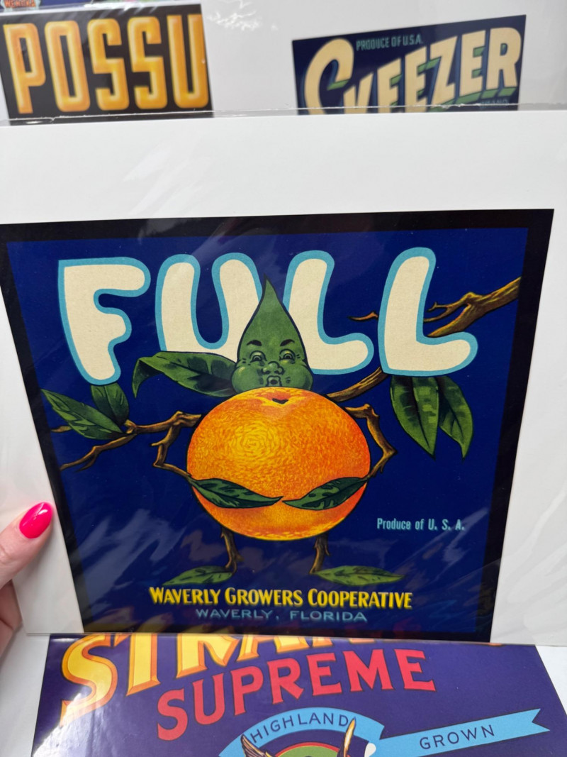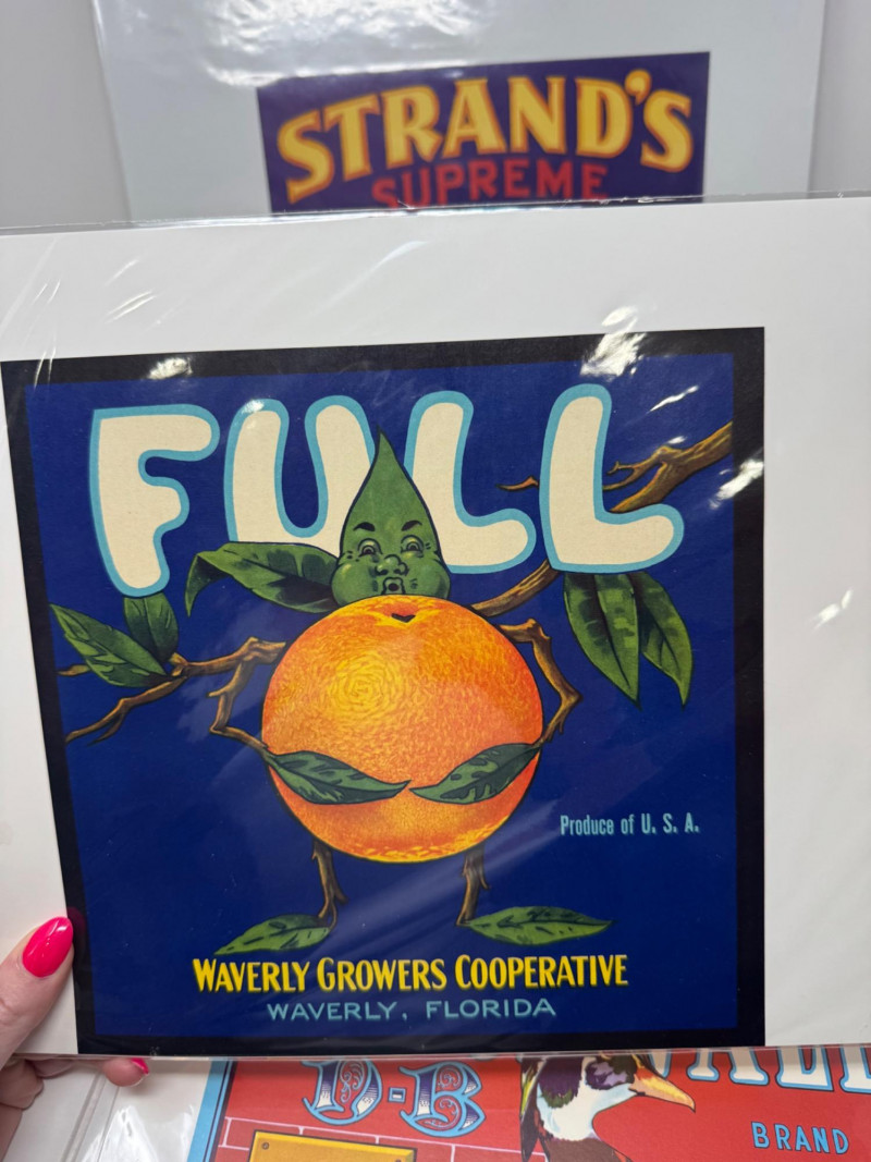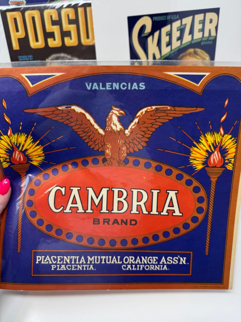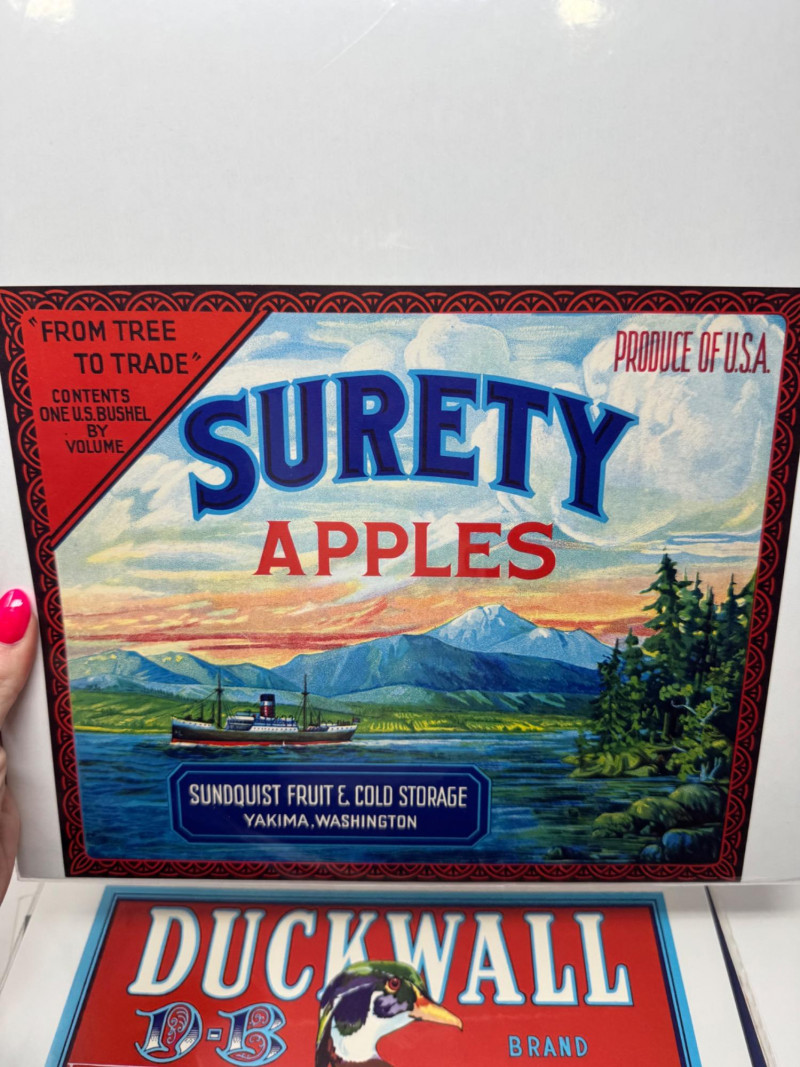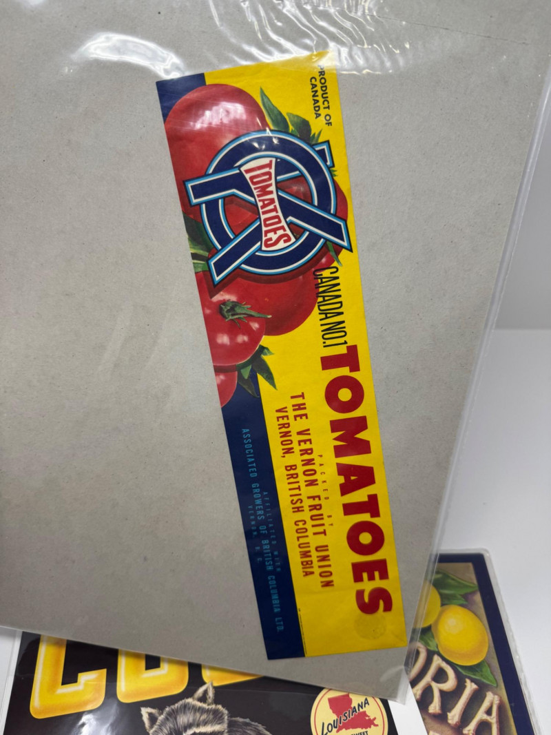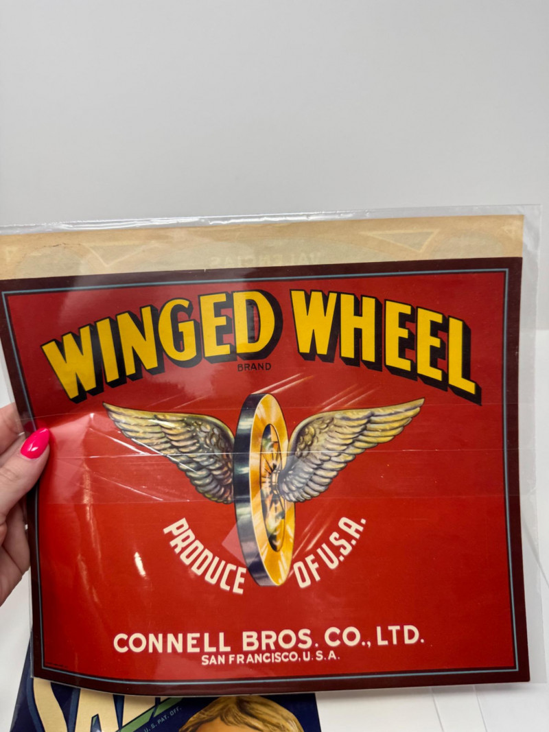 #2: 21-pc New Old Stock Vintage Fruit Crate Labels – Trout, Big Wolf + Buckaroo Brand And More.Common Label Examples: