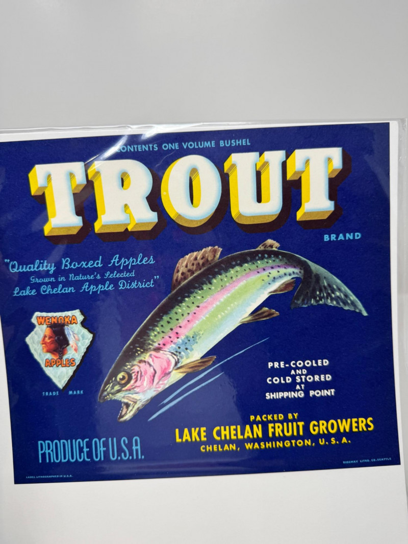 Lot # 41 - #2: 21-pc New Old Stock Vintage Fruit Crate Labels – Trout, Big Wolf +