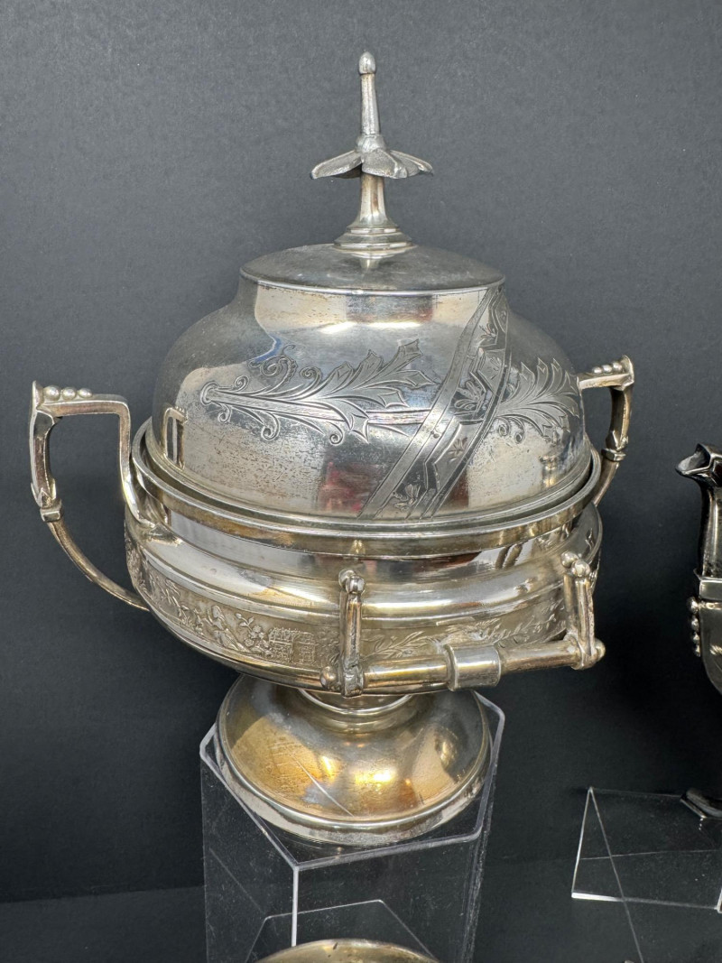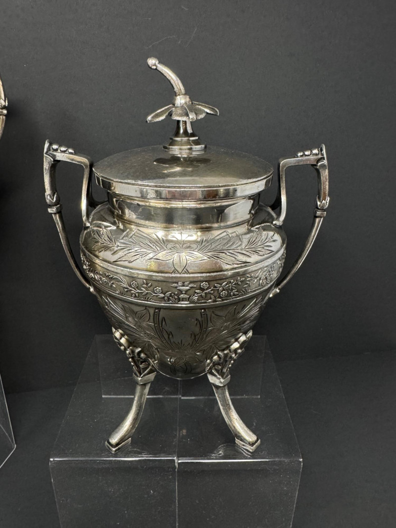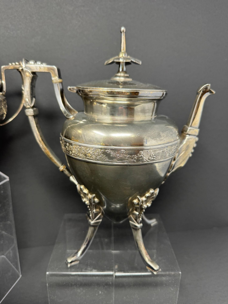Lot # 48 - Victorian Aesthetic Era Silver Plate Tea Set w/ Domed Butter Dish