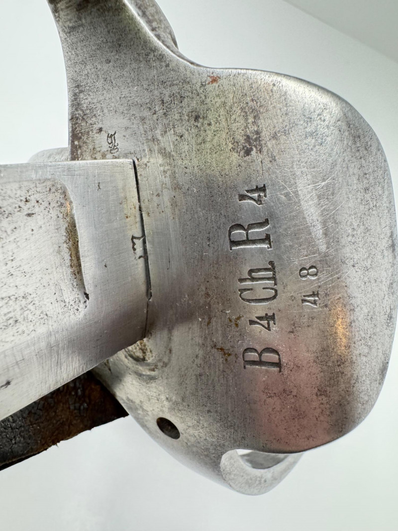 Lot # 55 - Antique Cavalry Sword w/ Steel Scabbard & Marked Bowl Guard