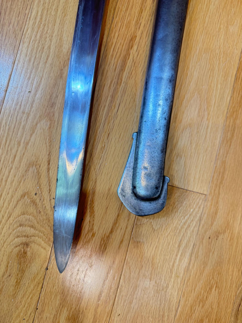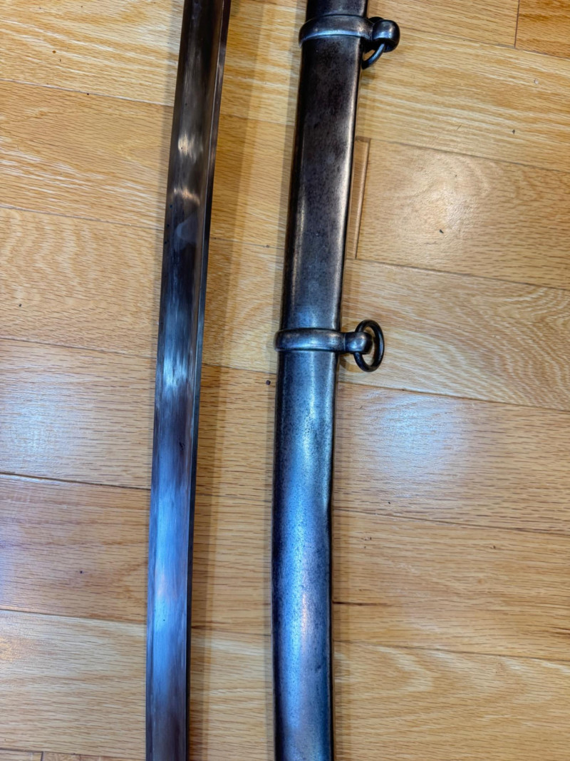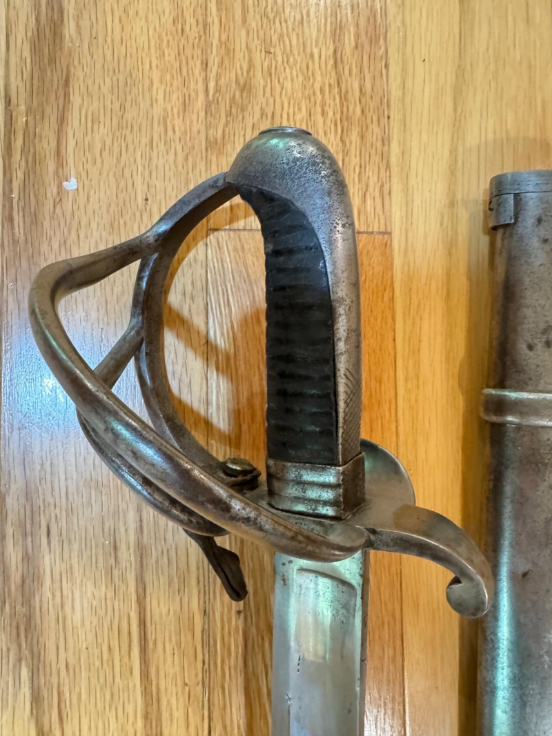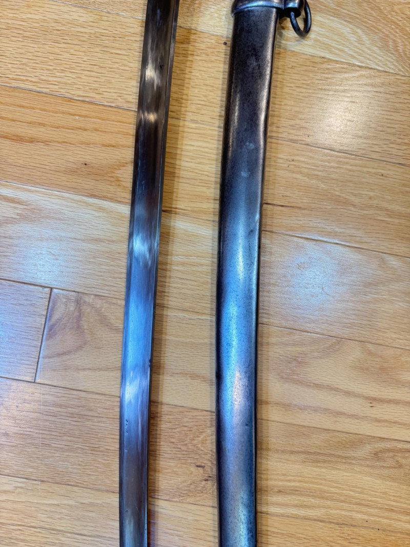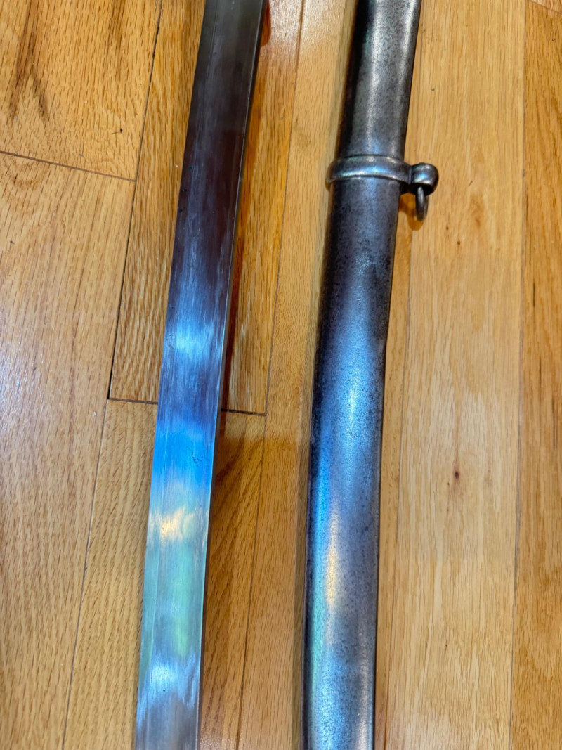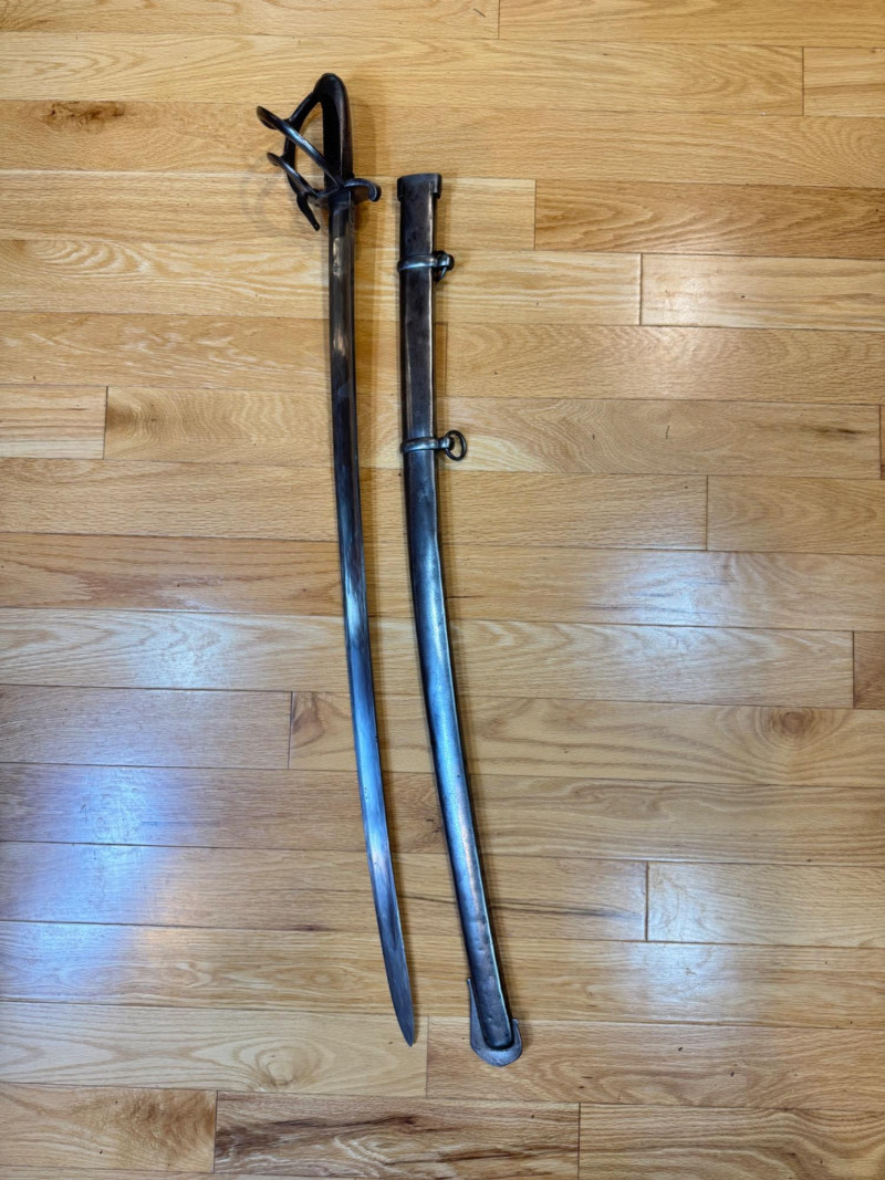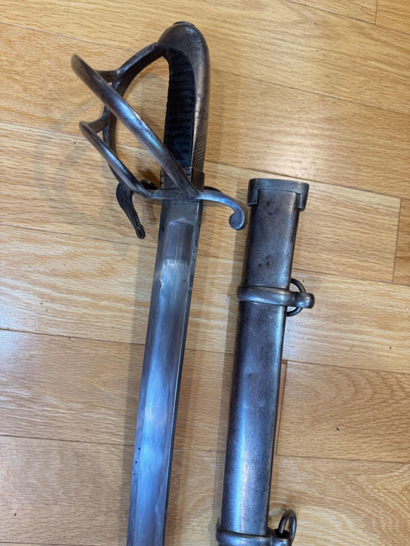 Antique Cavalry Sword w/ Steel Scabbard & Marked Bowl Guard. 42.5” Long