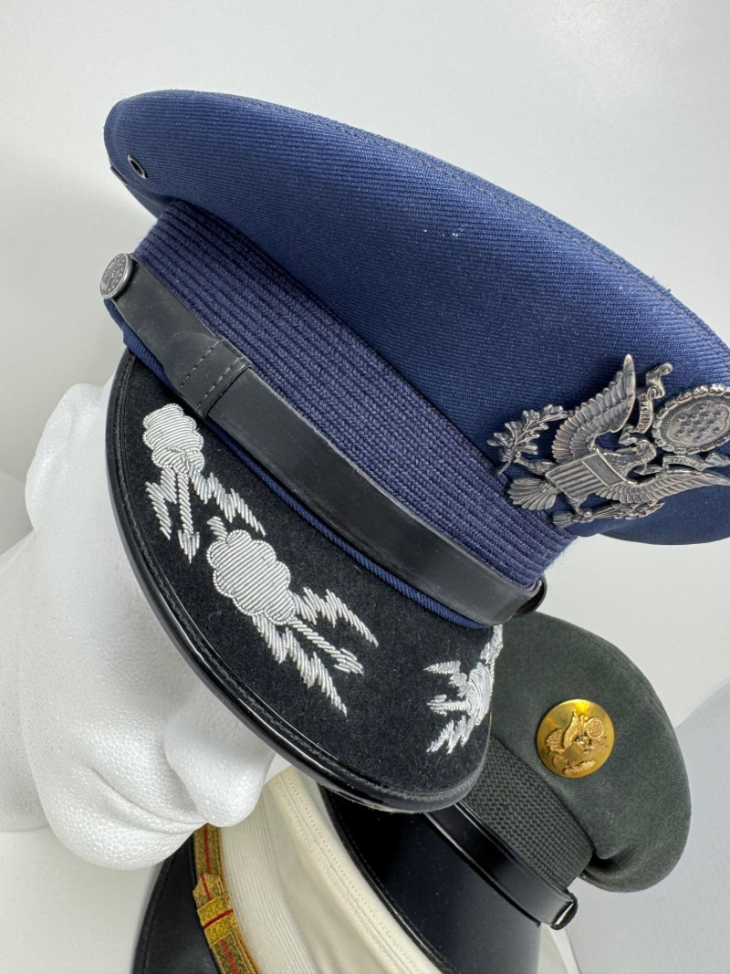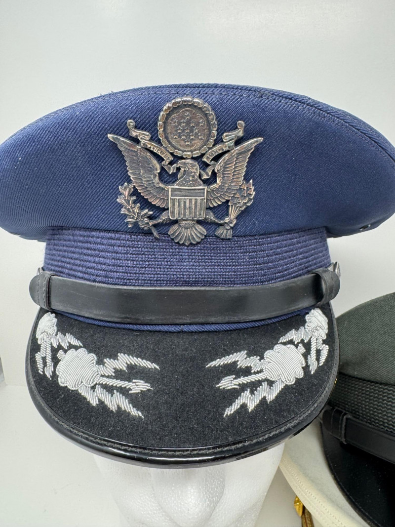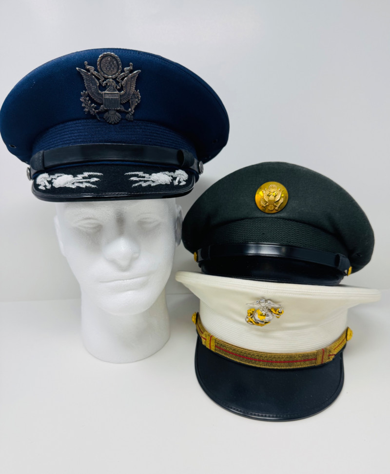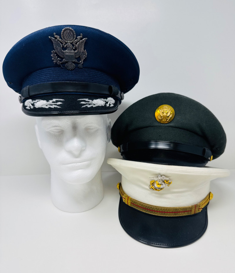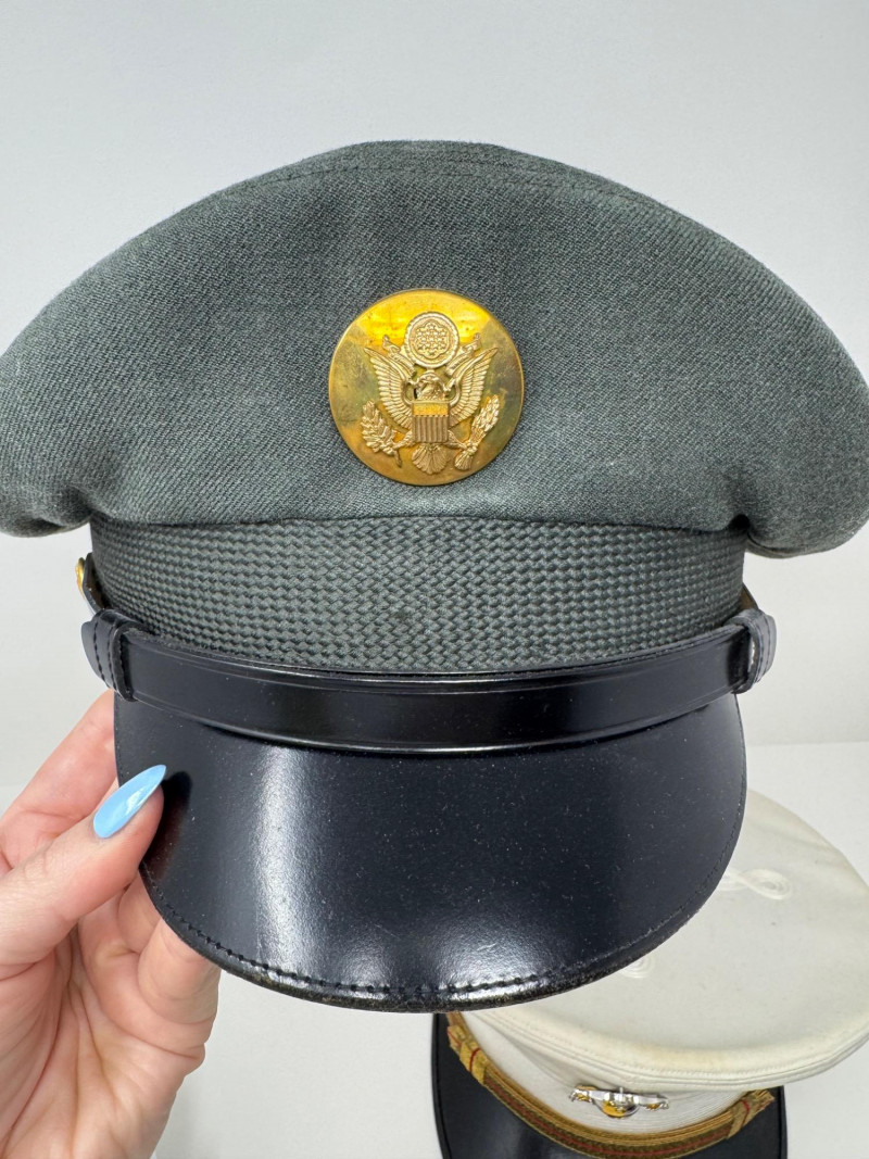 3 Vintage US Military Officer & Enlisted Hats - WWII to Vietnam Era Hats Only.
