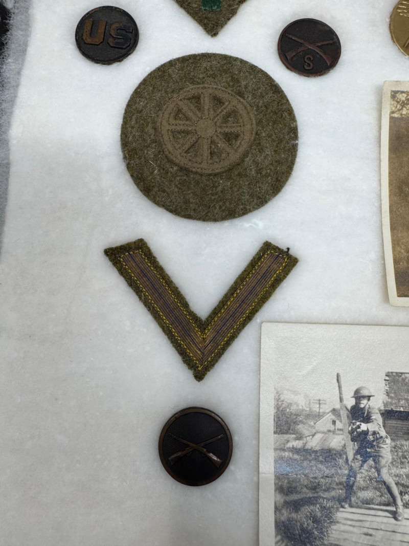 Lot # 82 - WWI Era Military Memorabilia Collection - Insignia, Photos, Medals