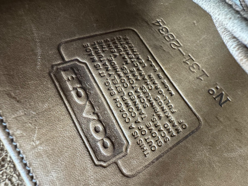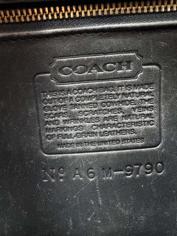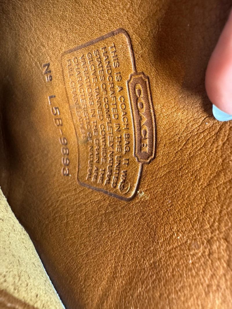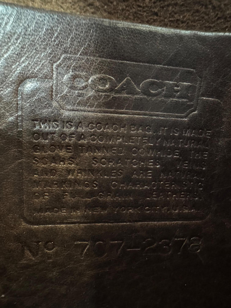 Vintage Coach Leather Bag Lot – 6 USA-Made Crossbody Purses. Visible serial numbers include: No. 707-2376 No. L5B-9893 No. A6M-9790 No. H4B-9893 No. 654-7805 No. 131-2584