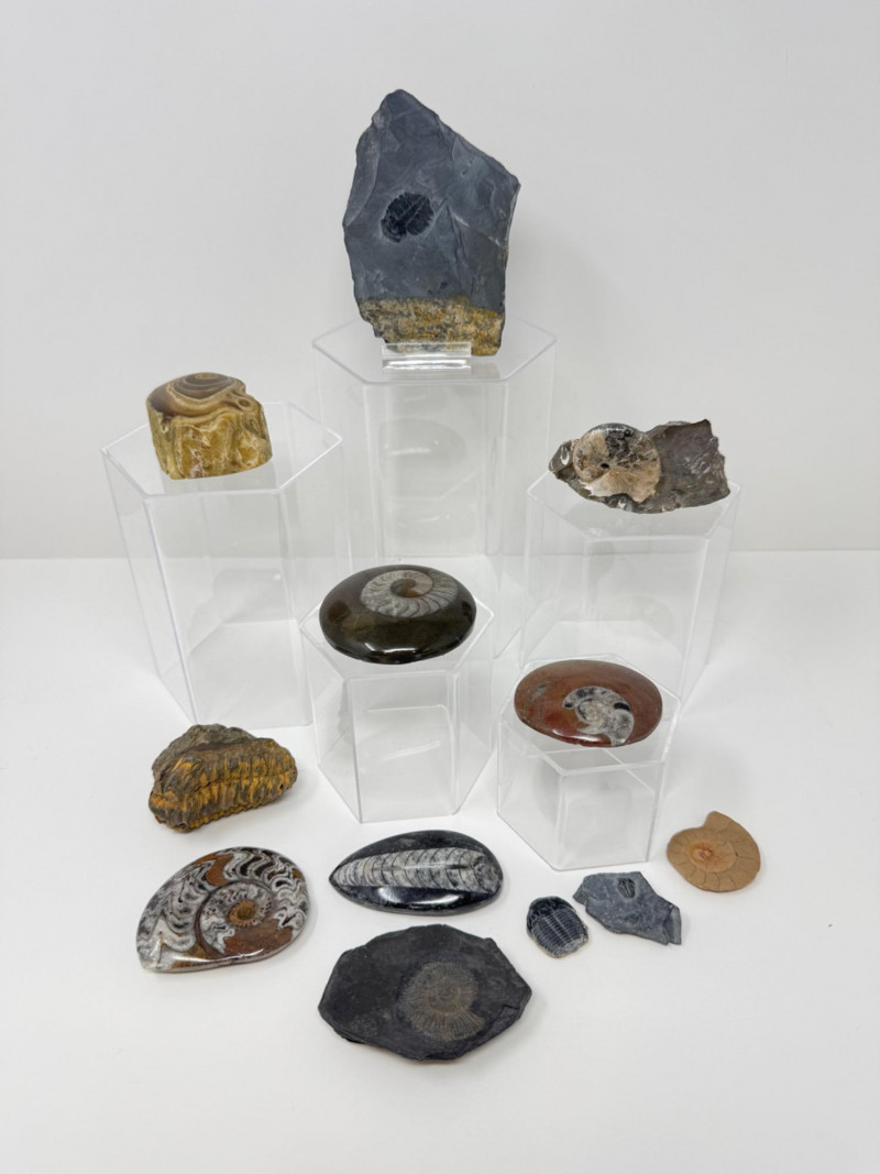 Lot # 92 - 12 Polished & Natural Fossils – Ammonites, Trilobites, Petrified Coral
