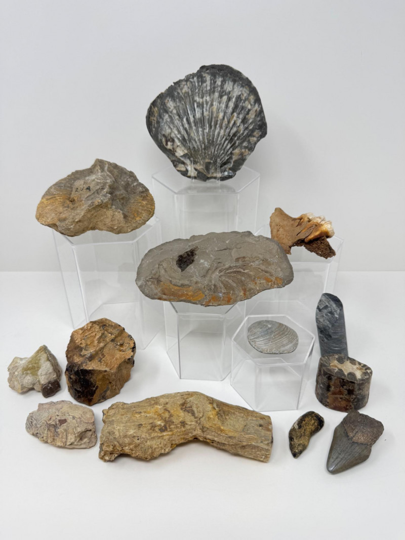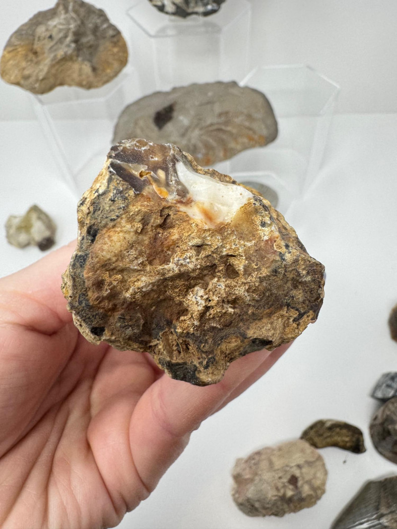 Prehistoric Fossil Collection – Shell, Bone, and Tooth Specimens. Please note: These mineral specimens have not been professionally tested or identified. They are offered "as-is" based on visual assessment. Bid accordingly.