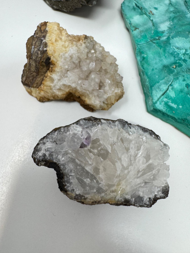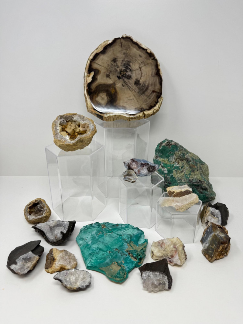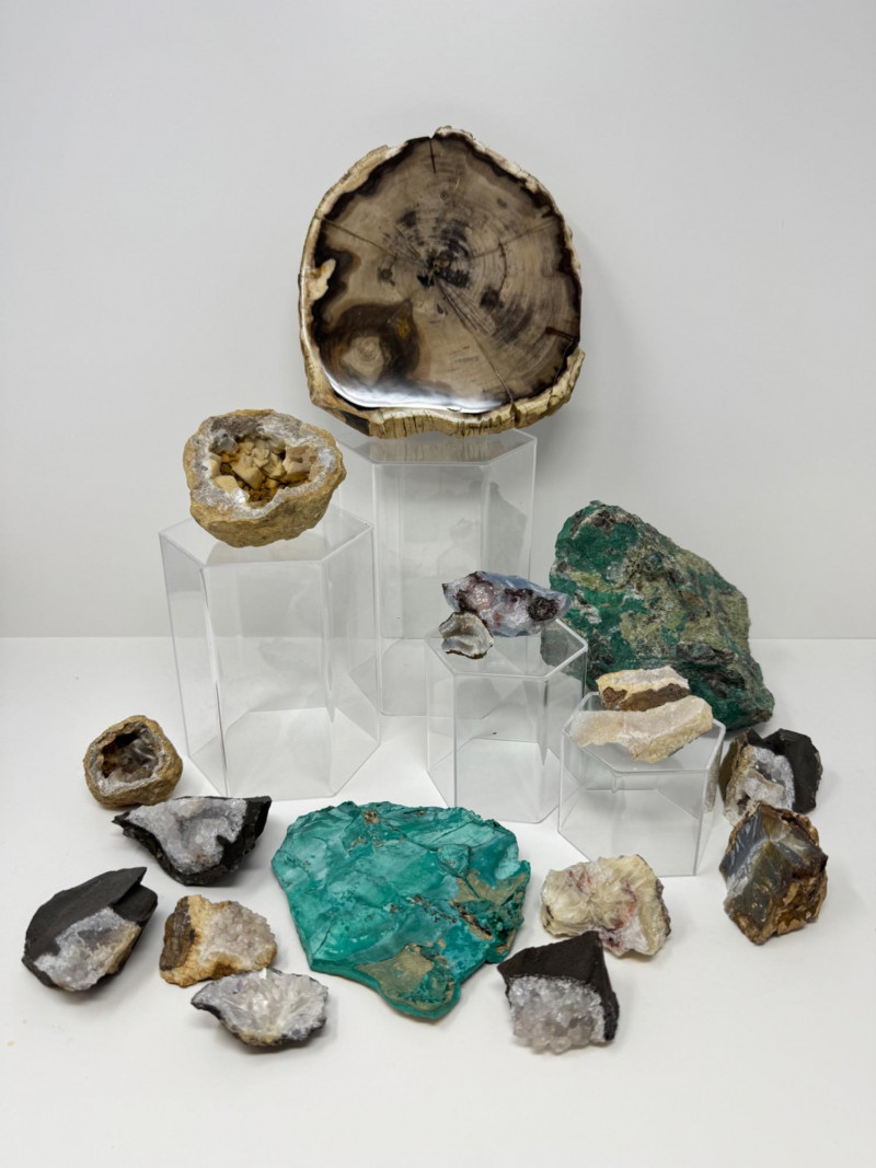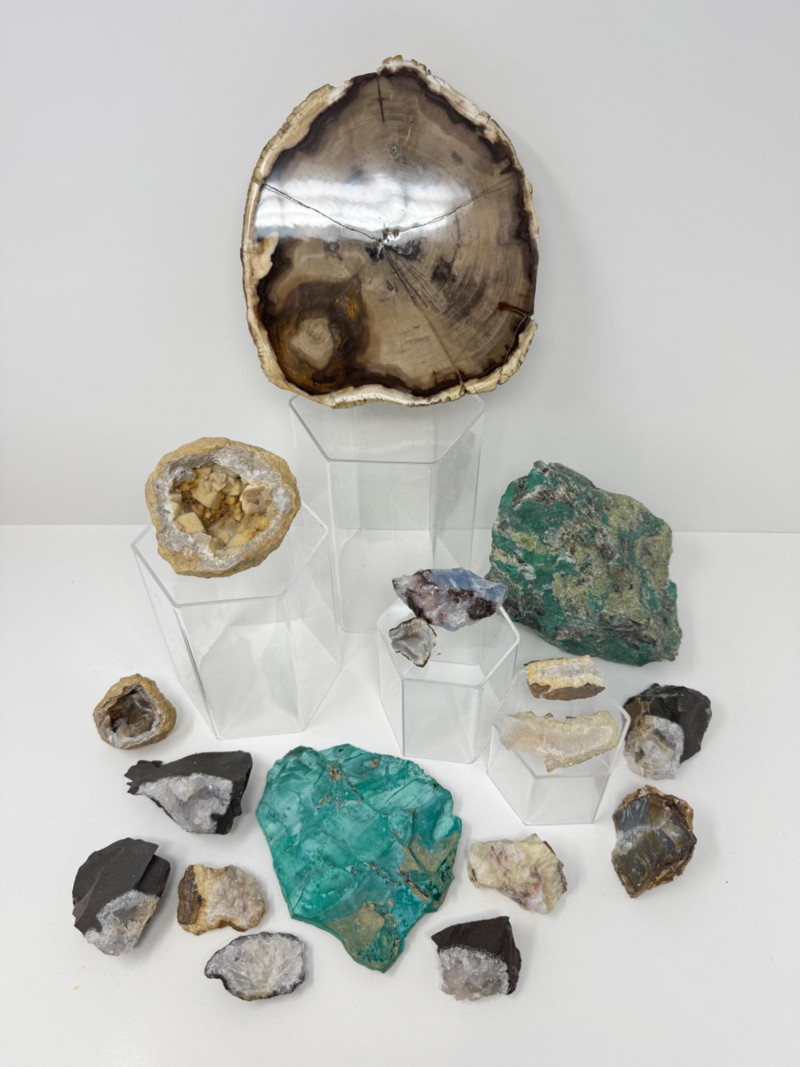 Mineral & Petrified Wood Collection – Geodes, Chrysocolla, Crystals. Please note: These mineral specimens have not been professionally tested or identified. They are offered "as-is" based on visual assessment. Bid accordingly.