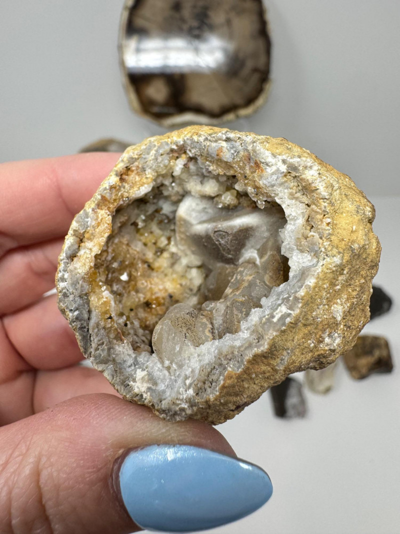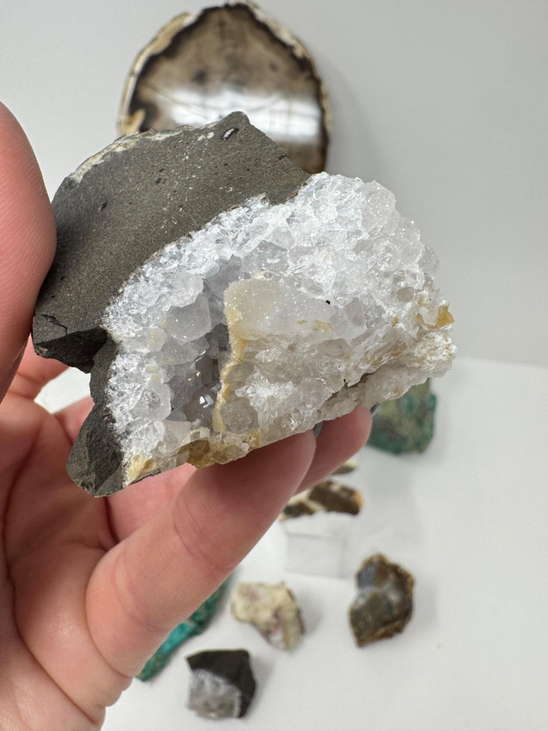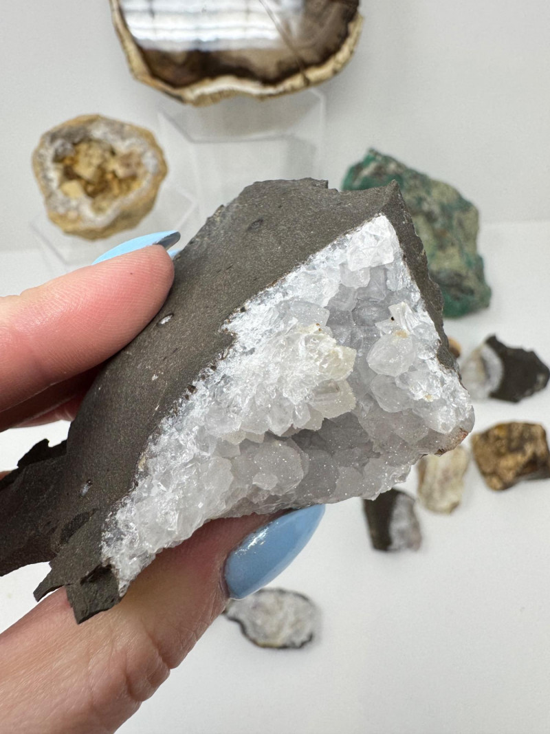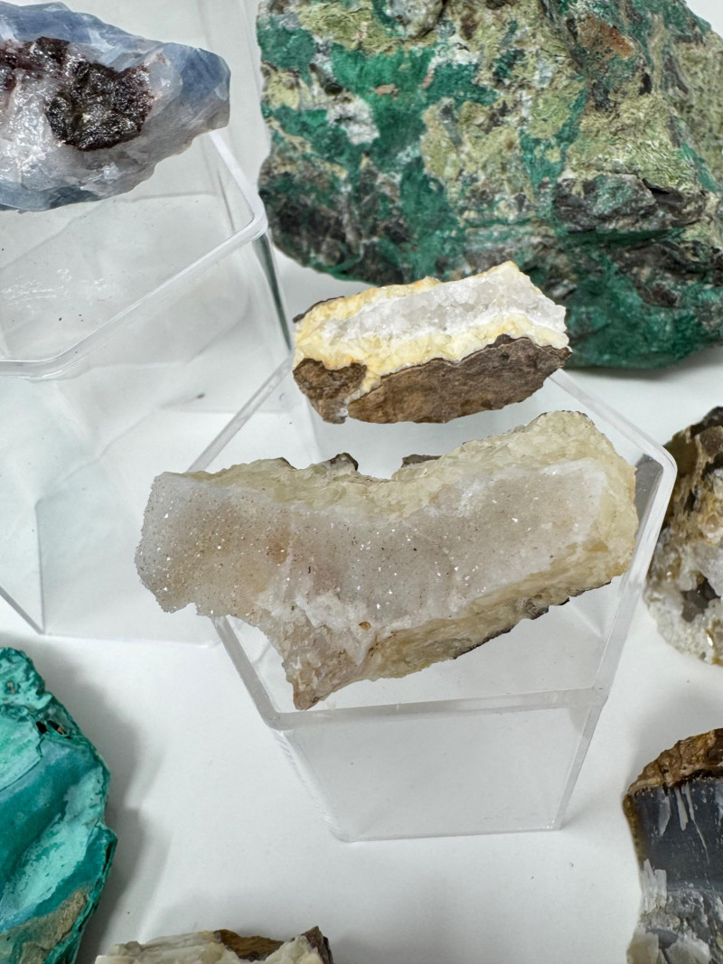 Mineral & Petrified Wood Collection – Geodes, Chrysocolla, Crystals. Please note: These mineral specimens have not been professionally tested or identified. They are offered "as-is" based on visual assessment. Bid accordingly.