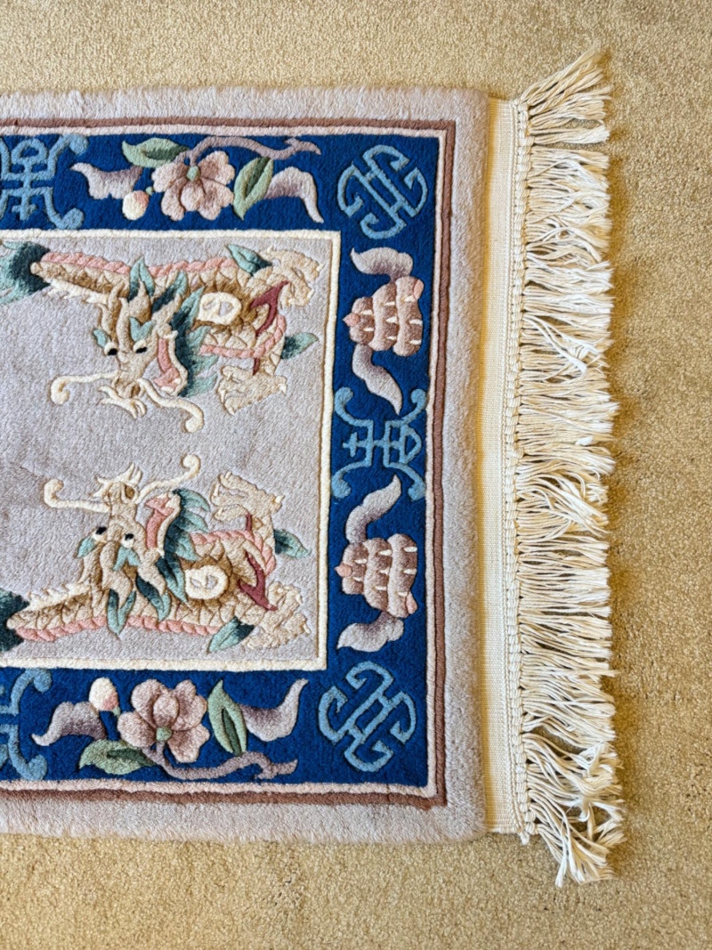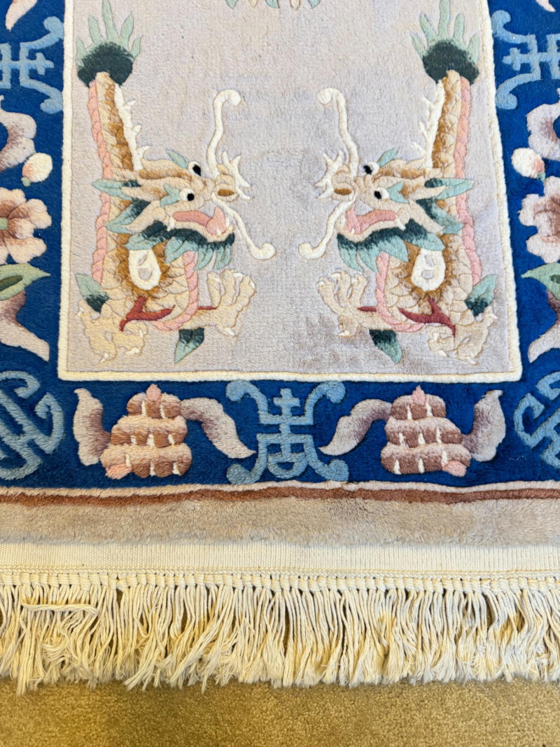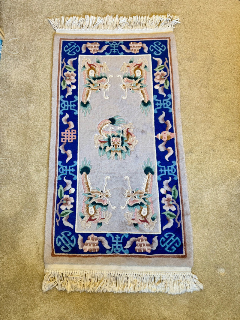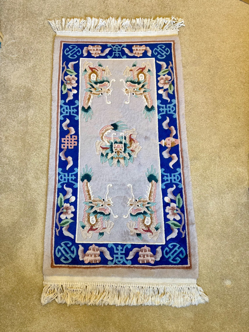 Lot # 100 - Asian Wool Accent Rug - Stylized Dragons, Flowers & Symbolic Motifs