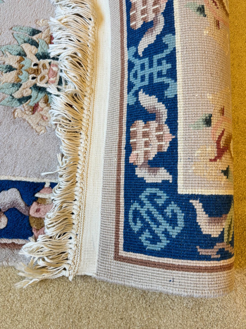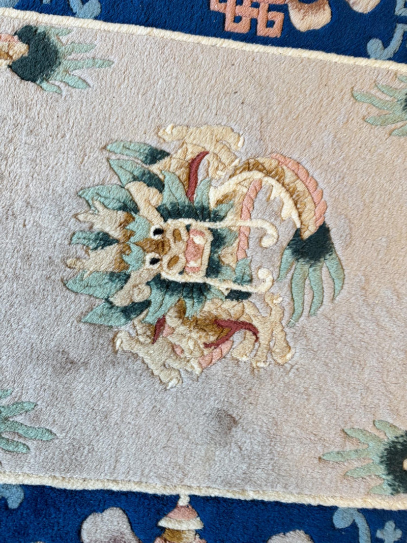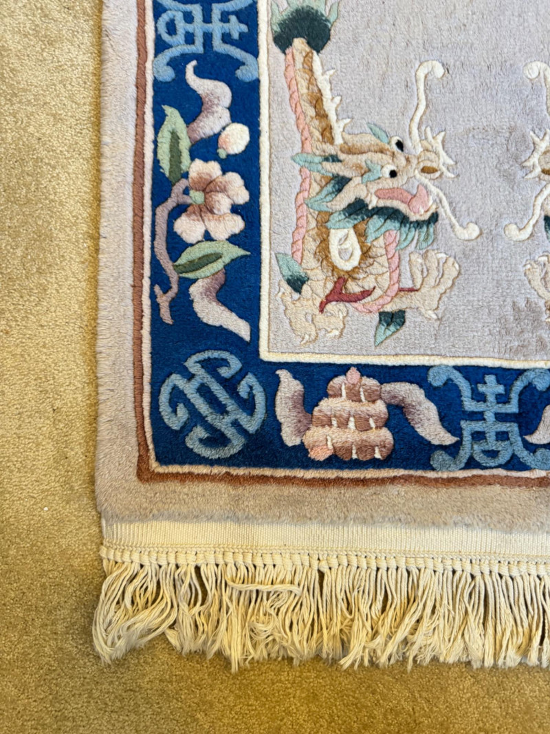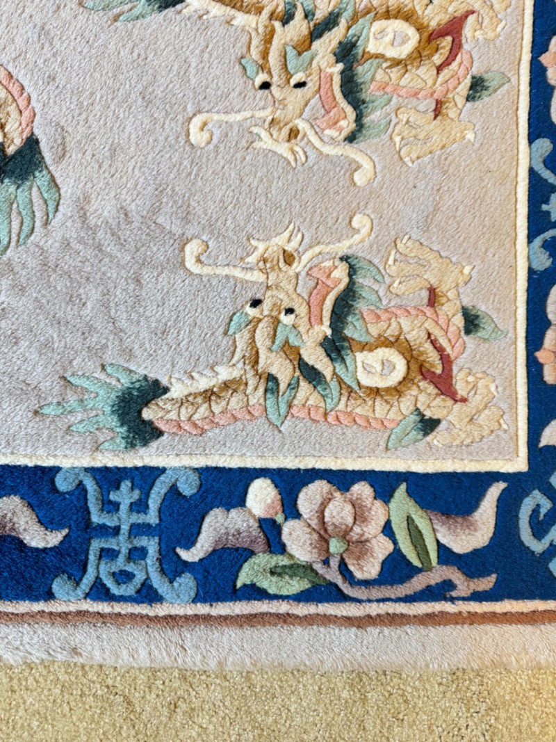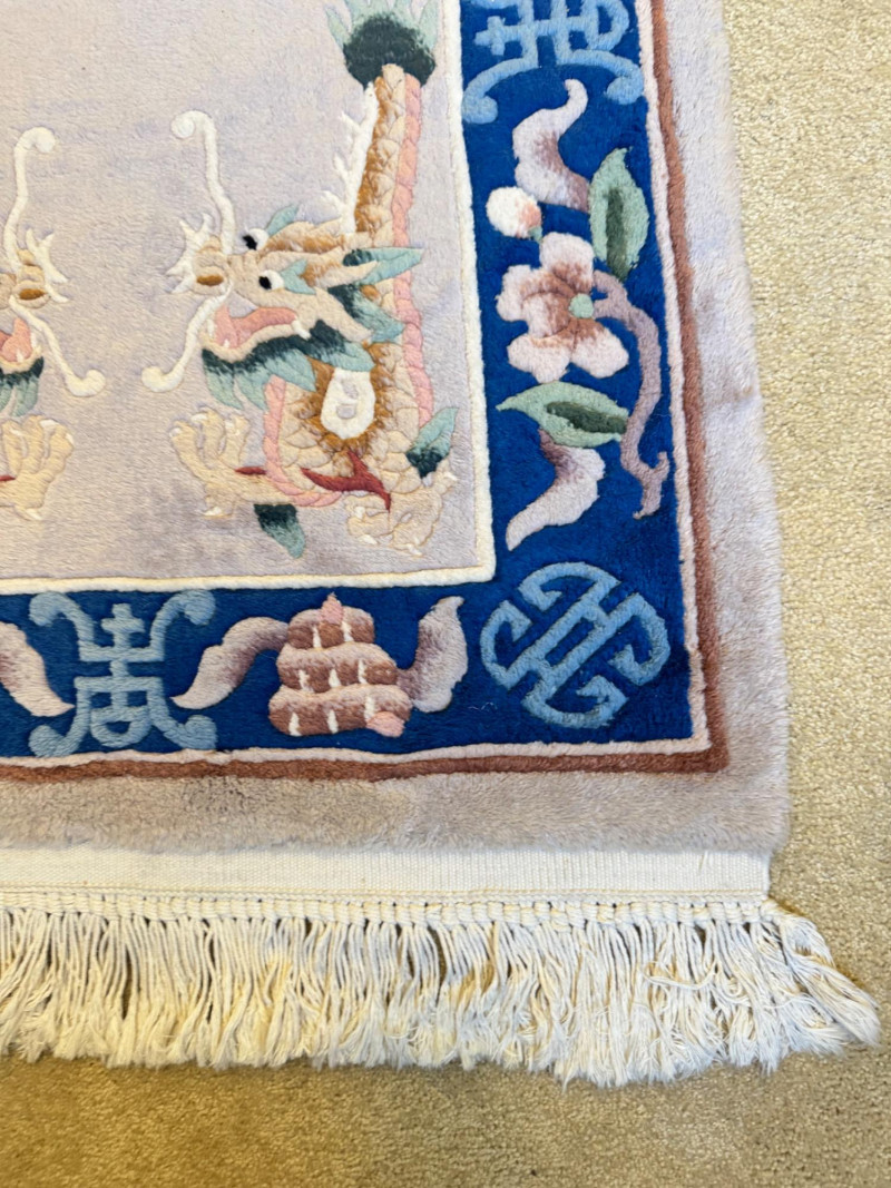 Lot # 100 - Asian Wool Accent Rug - Stylized Dragons, Flowers & Symbolic Motifs