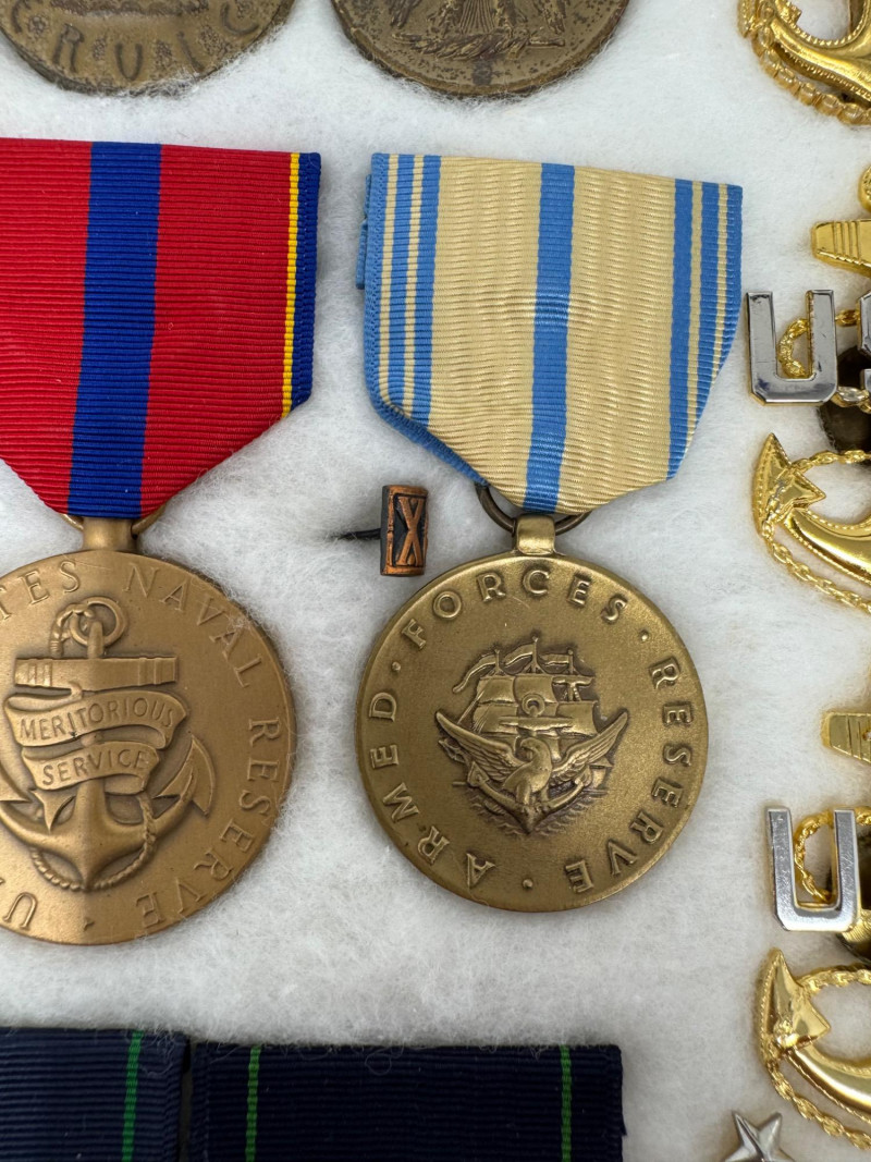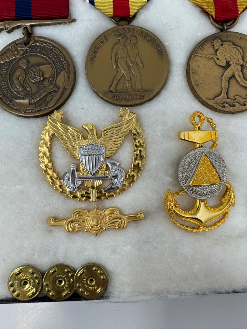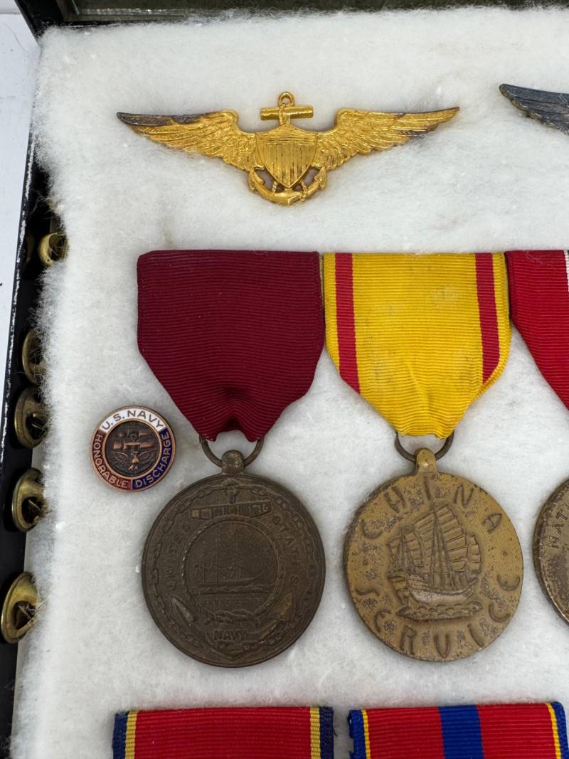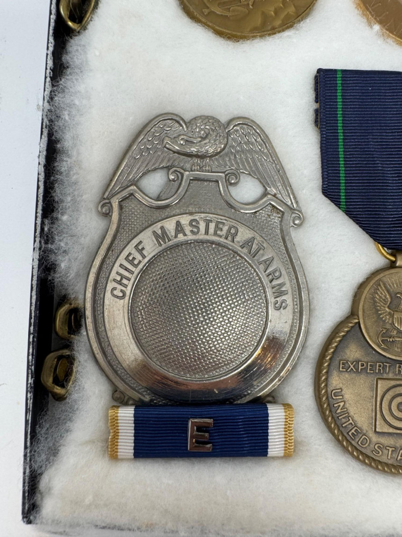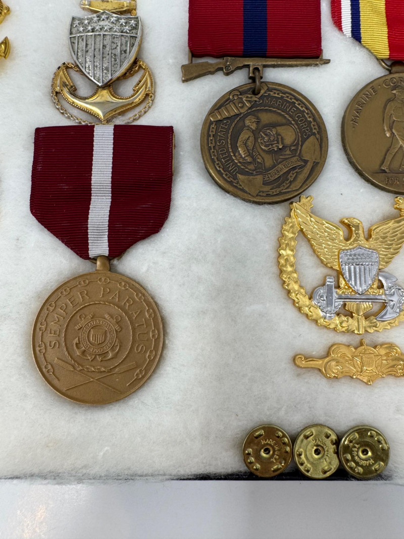 U.S. Navy Medal & Insignia Collection – Sharpshooter, CPO, Vietnam, WWII+ Glass Top Case 16 x 12”