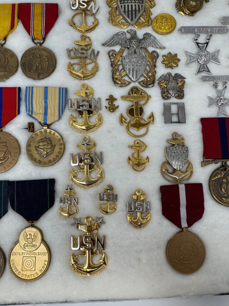 Lot # 103 - U.S. Navy Medal & Insignia Collection – Sharpshooter, Vietnam, WWII +