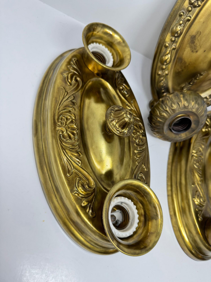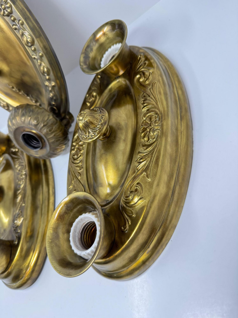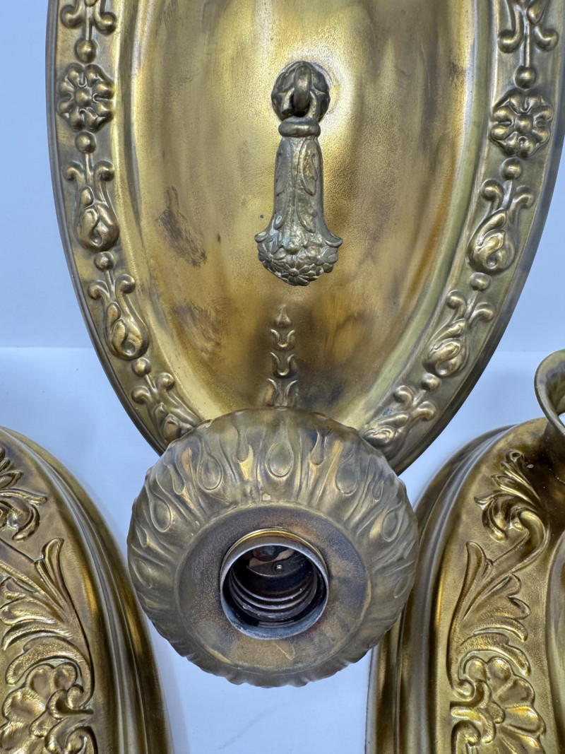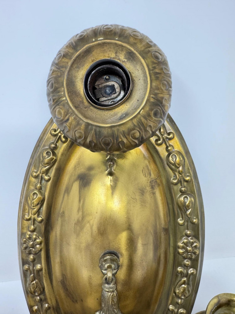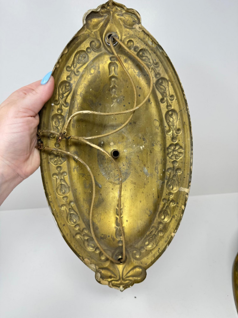 Antique & Vintage Ornate Lightweight Metal Wall Sconces – Set of 3. 14” Long 7” Wide This trio includes one sconce that appears to be antique, with the other two likely dating to a later vintage period.
