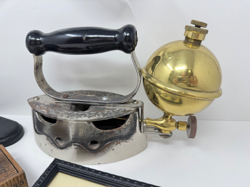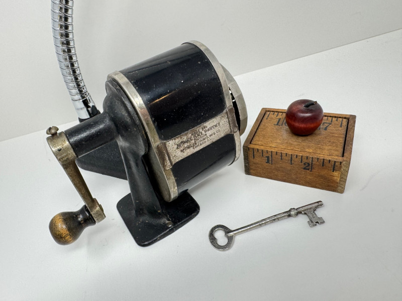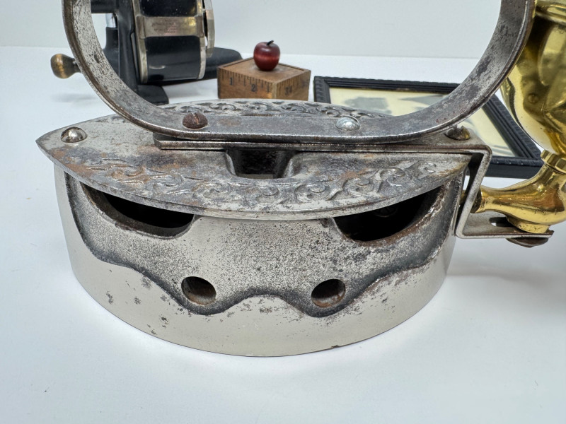 Lot # 116 - Curated Vintage/Antique Desk Treasures – Iron, Photo Box, Sharpener +