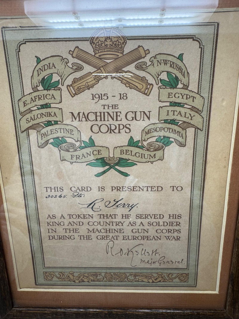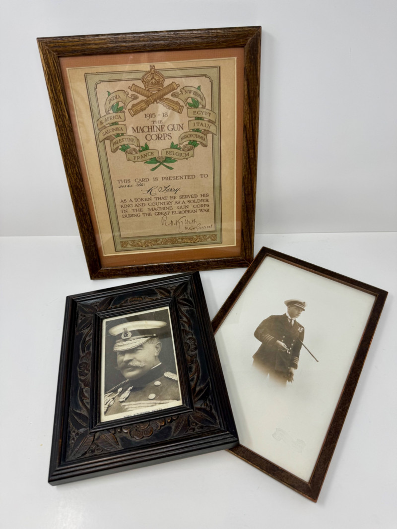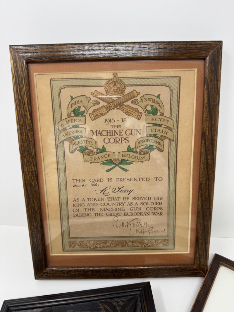 WWI Machine Gun Corps Certificate & Military Portraits – Framed Set. Antique & Vintage.