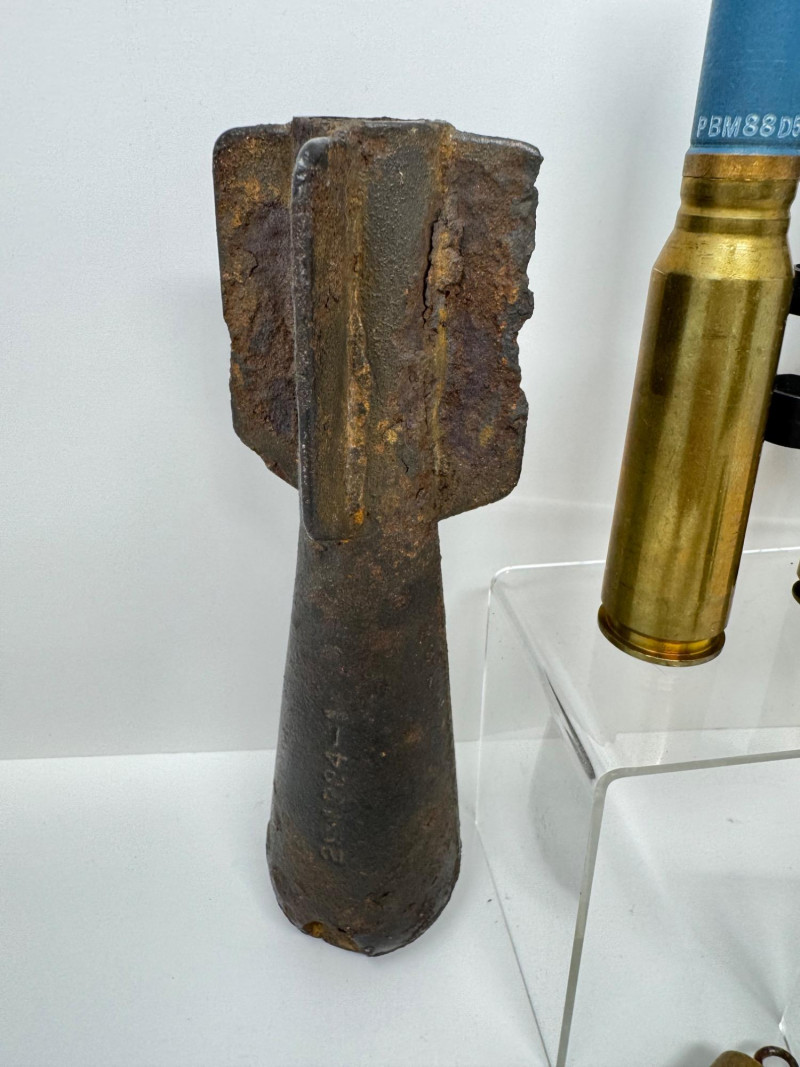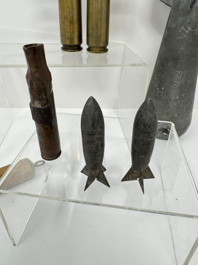 Vintage Inert Ordnance Display Lot – Dummy Rounds, Shells & Mini Bombs. Tallest Piece is 8”