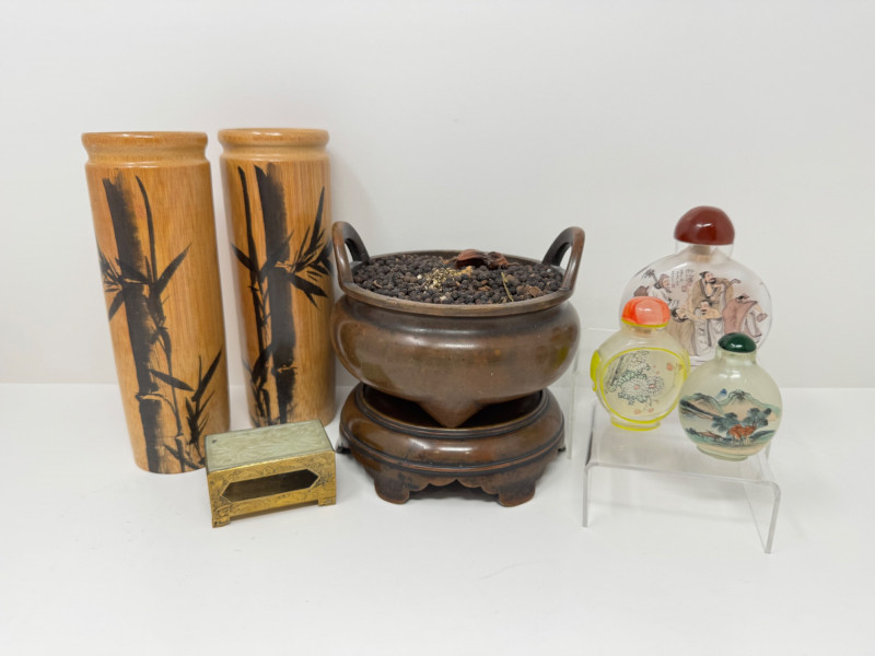 Antique & Vintage Asian Decorative Arts Lot - Incense, Bottles, Vases +