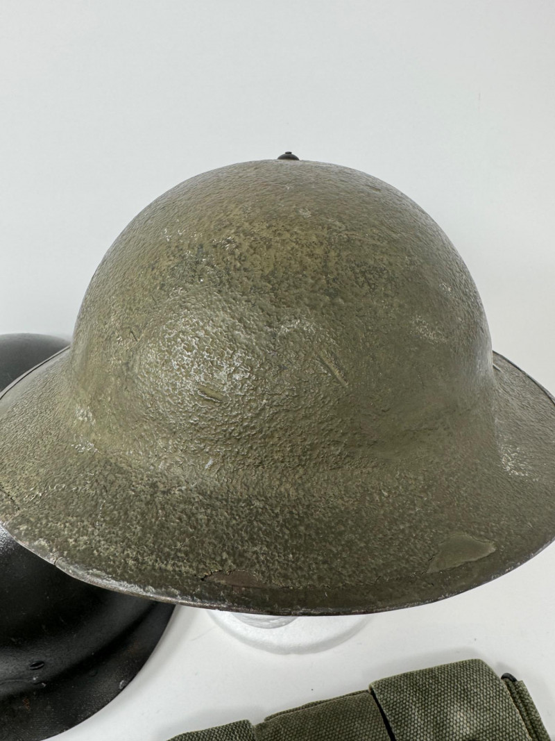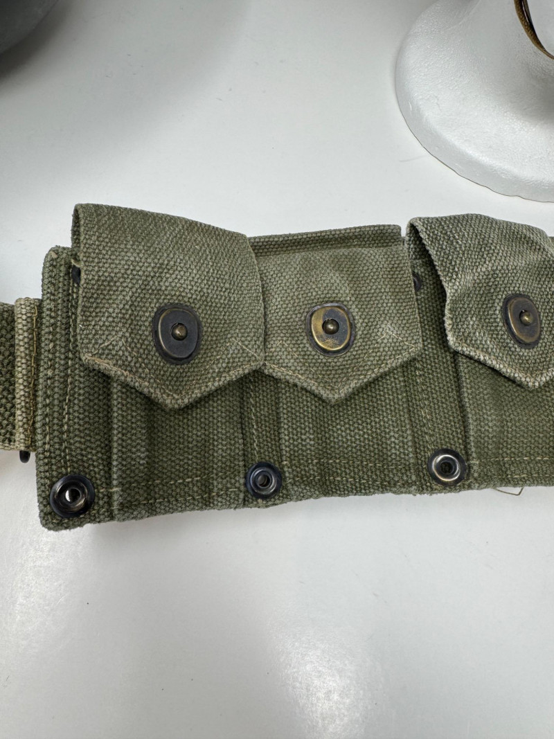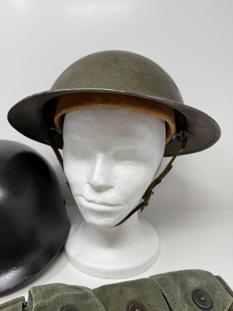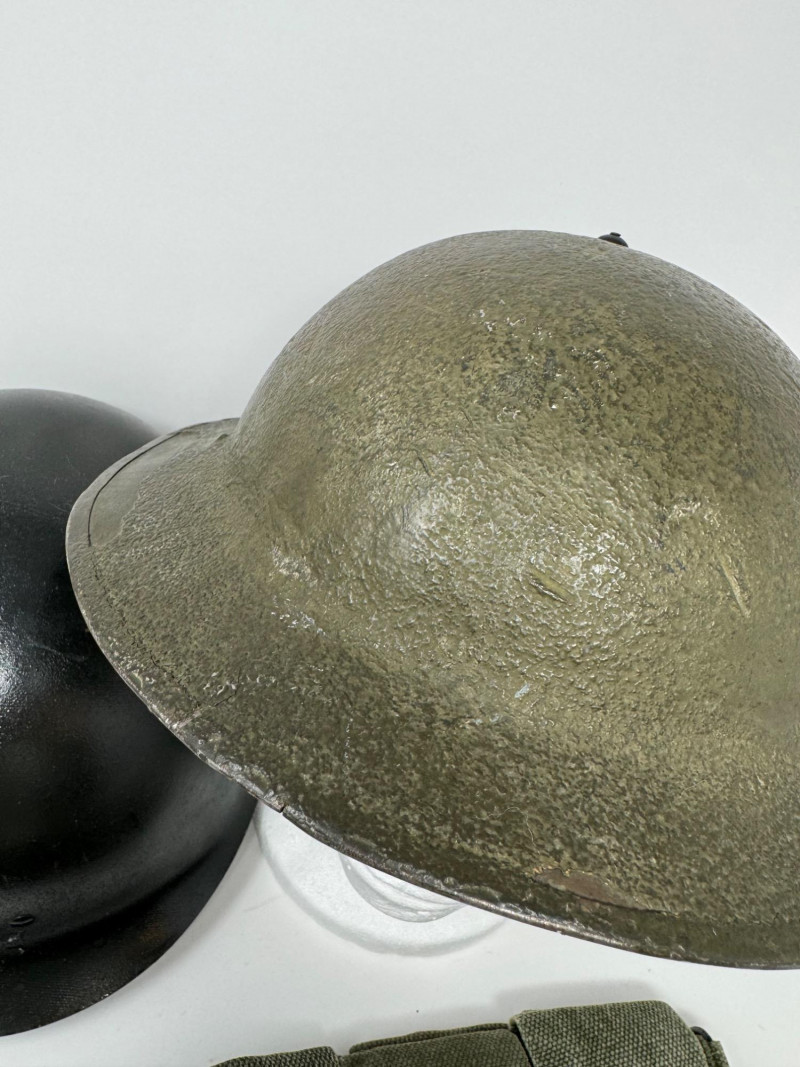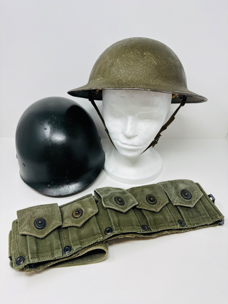 Lot # 125 - Vintage Military Helmets & Canvas Ammo Belt – 3 Pc Gear Lot