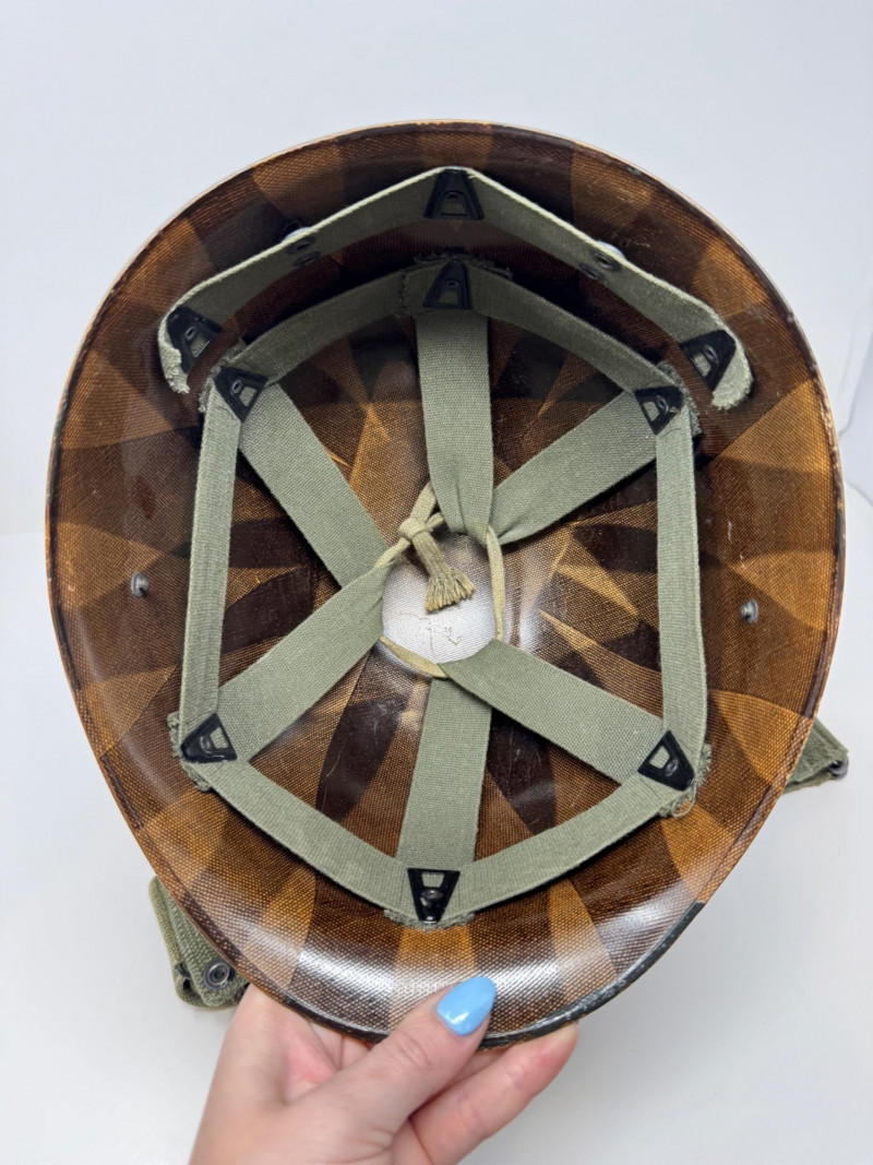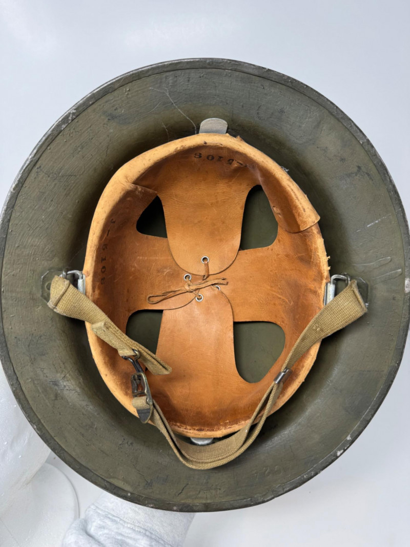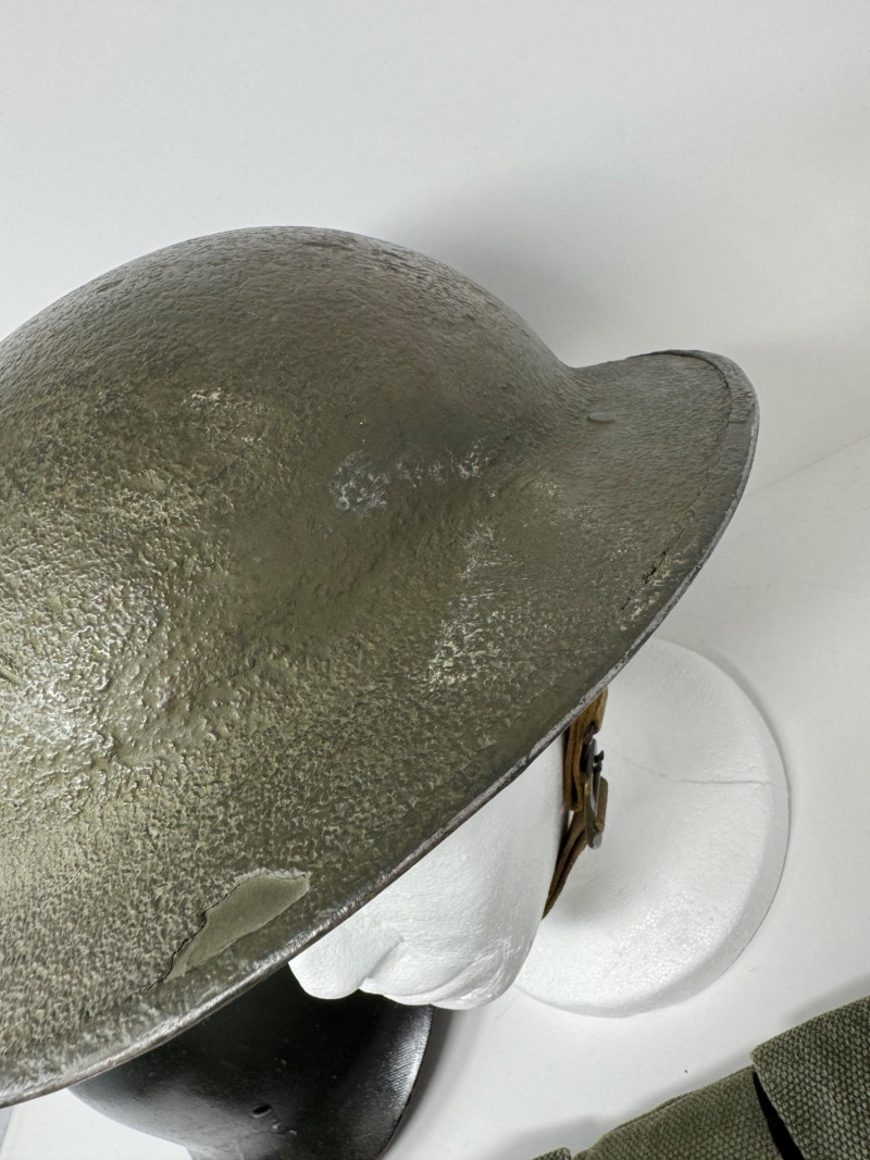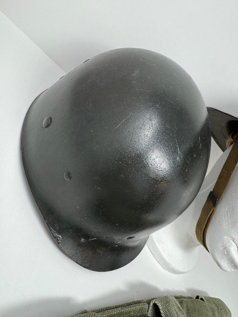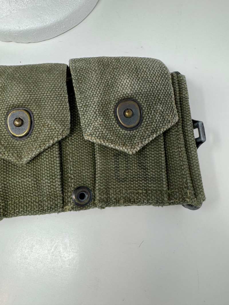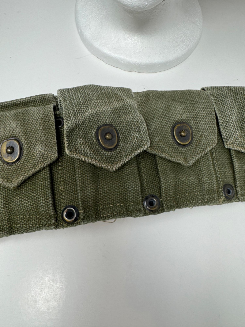 Lot # 125 - Vintage Military Helmets & Canvas Ammo Belt – 3 Pc Gear Lot