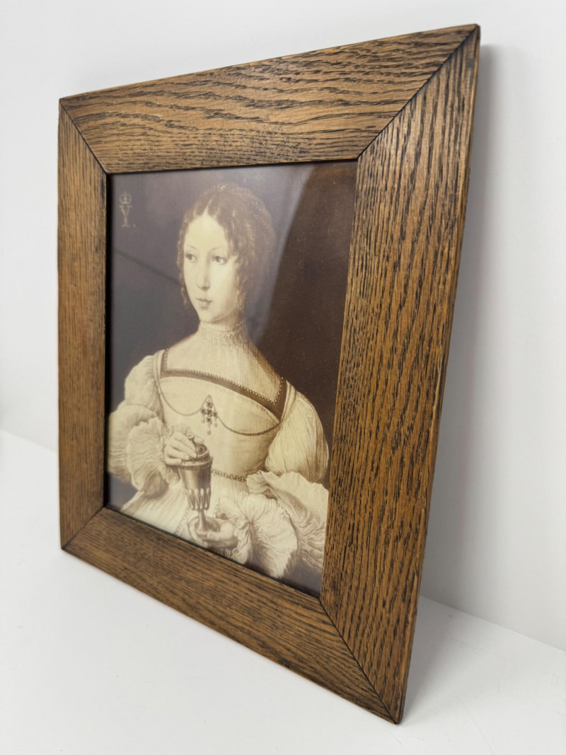 c.1950s Antique Portrait Print – Isabella of Austria, Framed. 10.5 x 12”