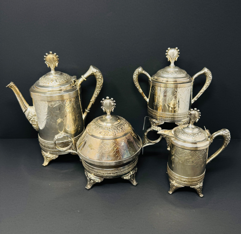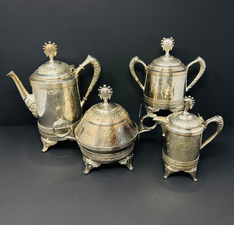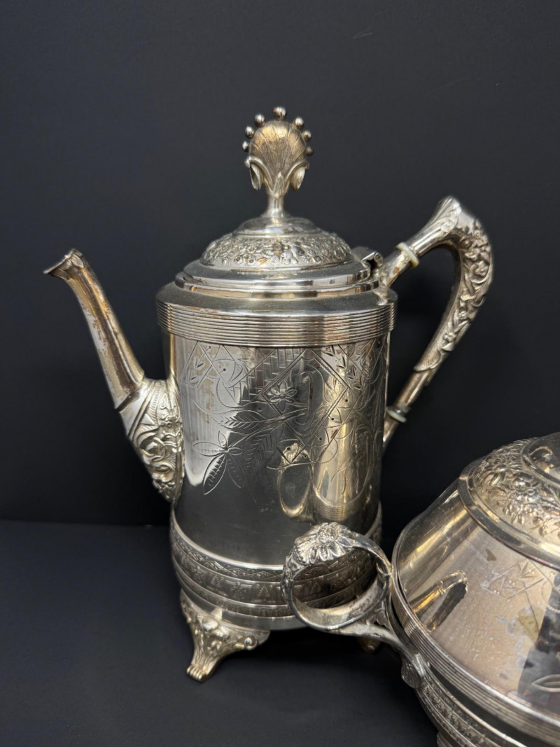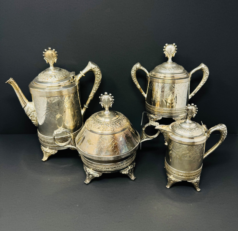 Lot # 140 - E.G. Webster Silverplate Tea Set – 4pc Triple Plate Ornate Set
