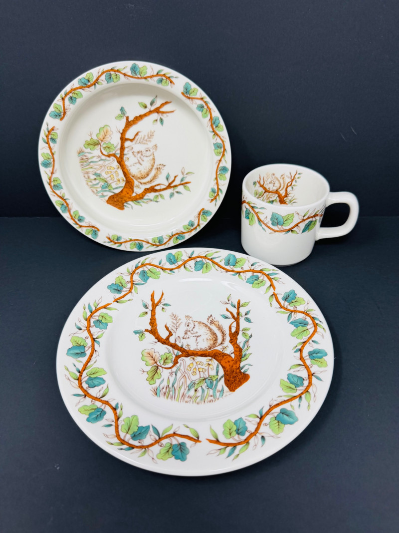 Tiffany & Co. Johnson Bros 3 Piece "Squirrel" Dish Set – England.