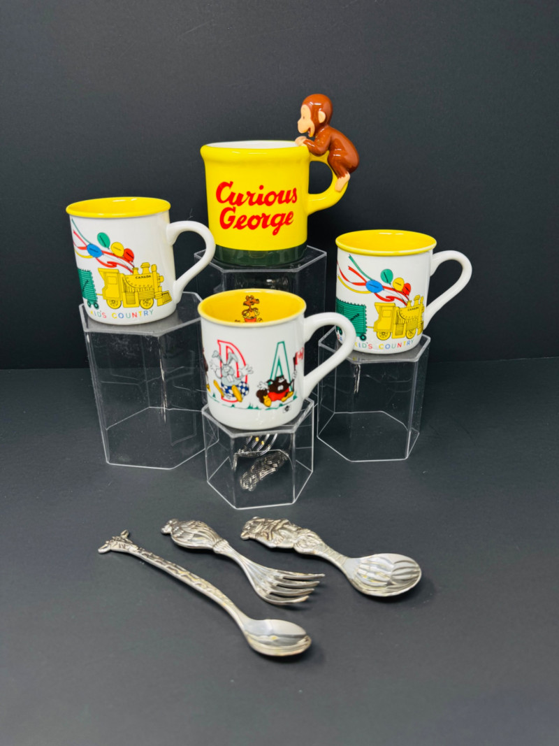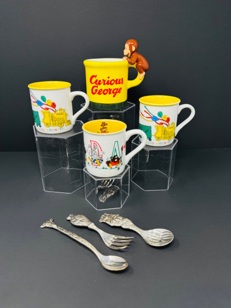 Curious George & Kids Country Mugs + Reed & Barton Animal Flatware.