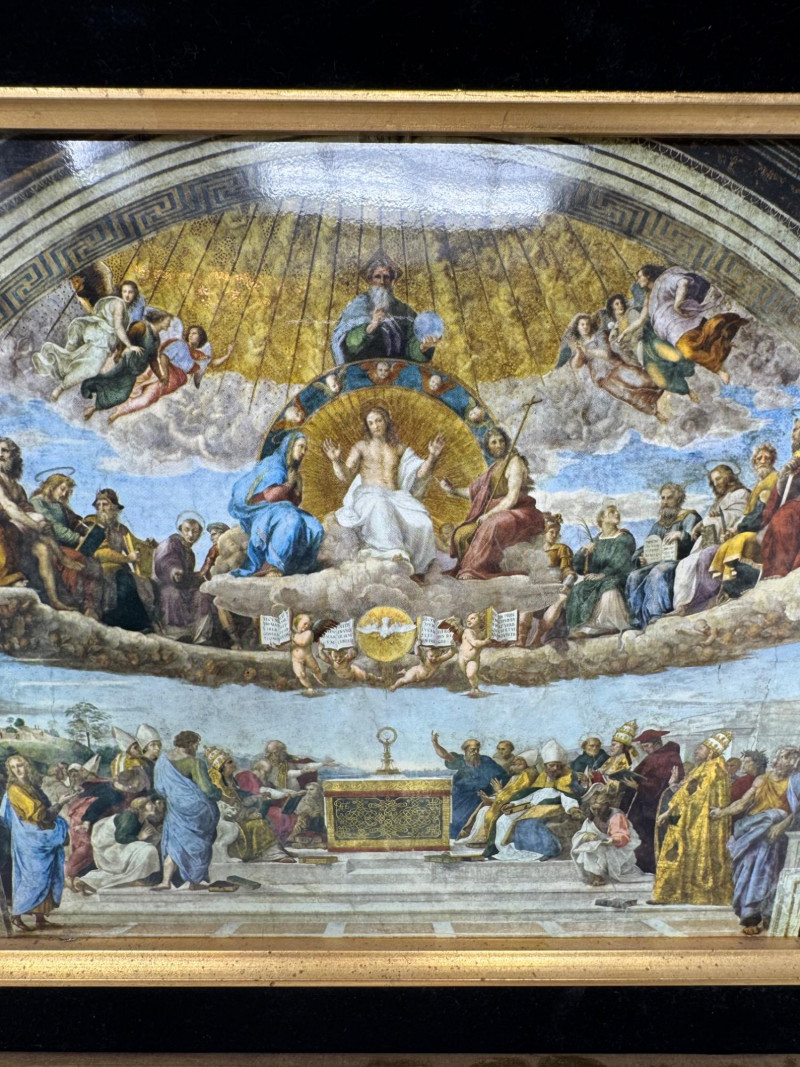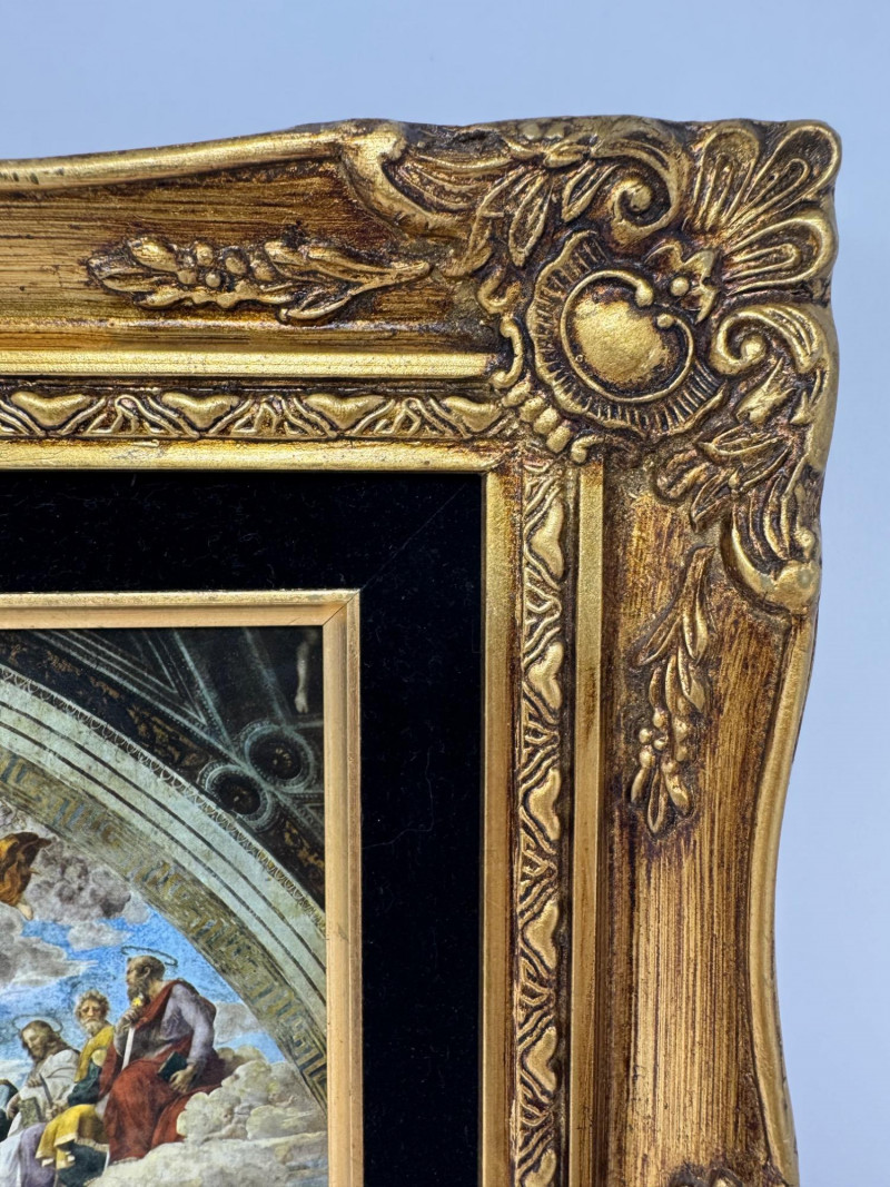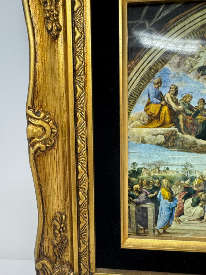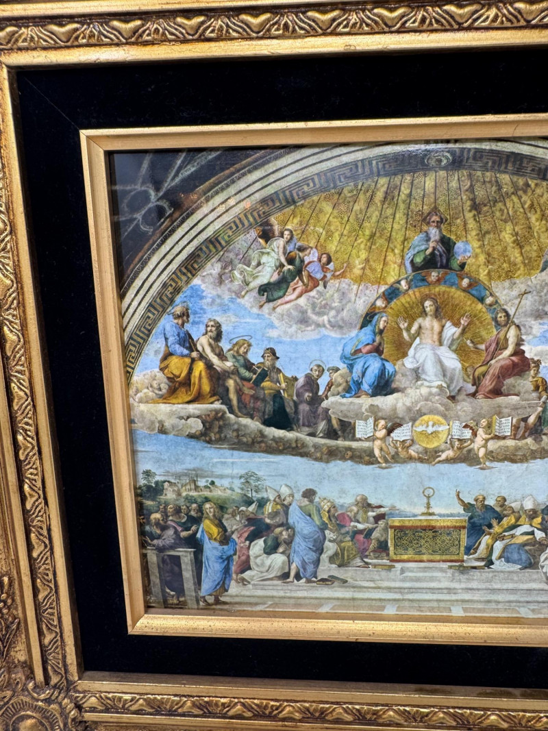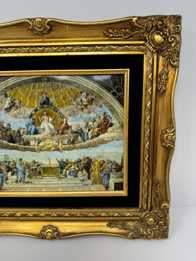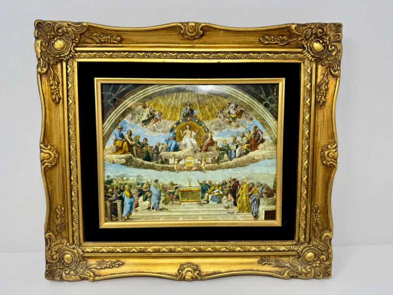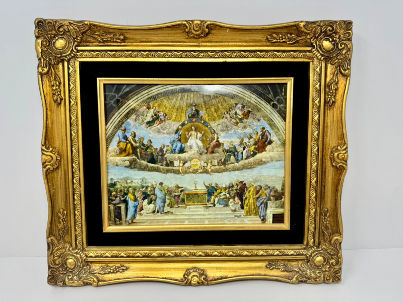 Beautifully Framed Raphael's Dispute of the Holy Sacrament Vatican. 15 x 13”
