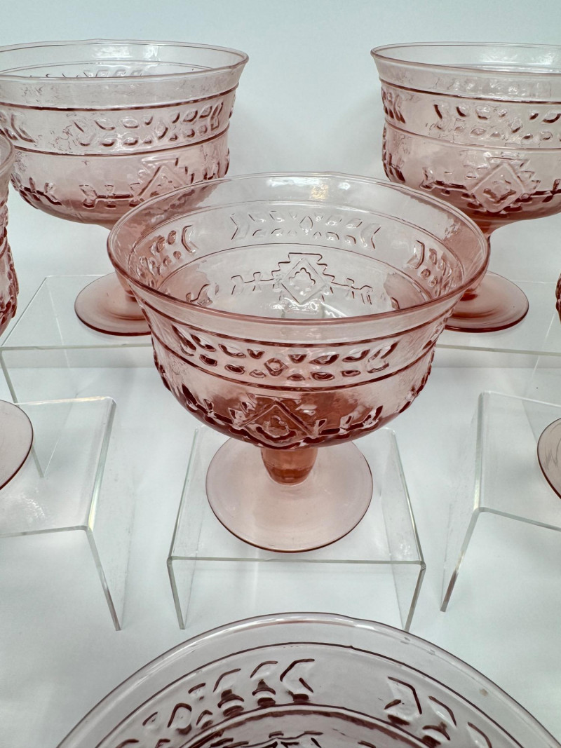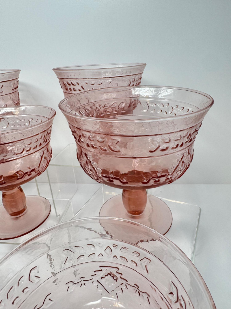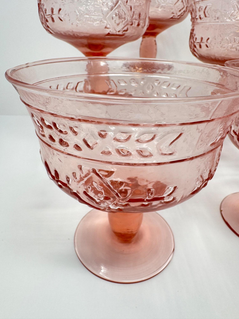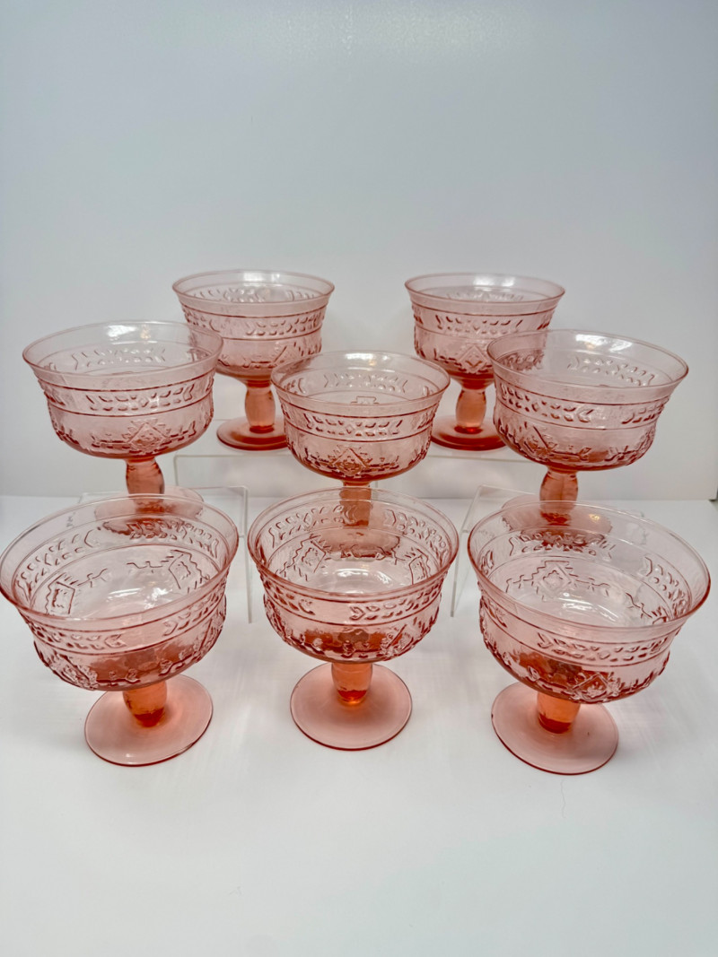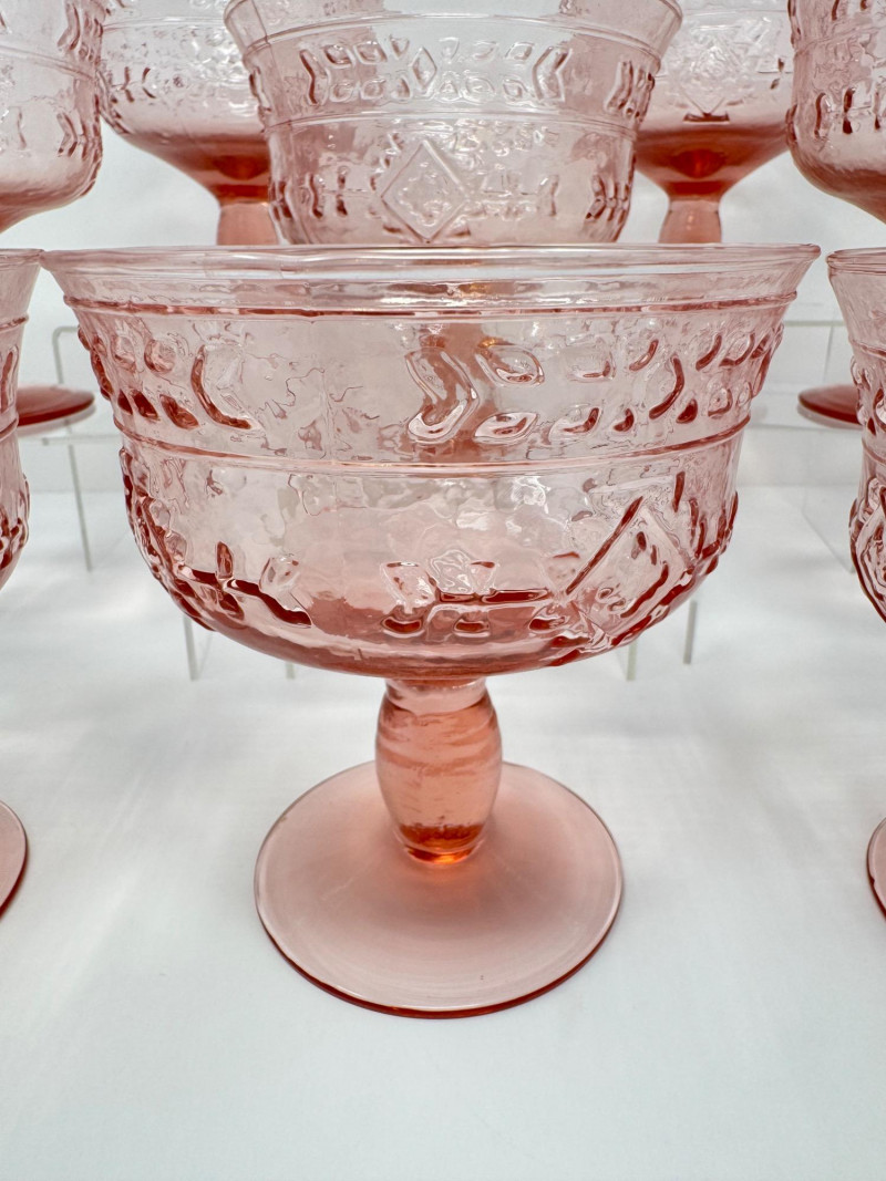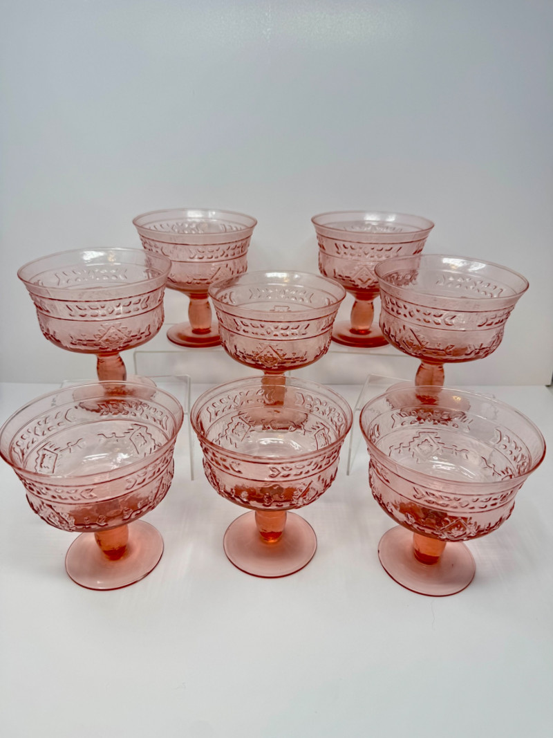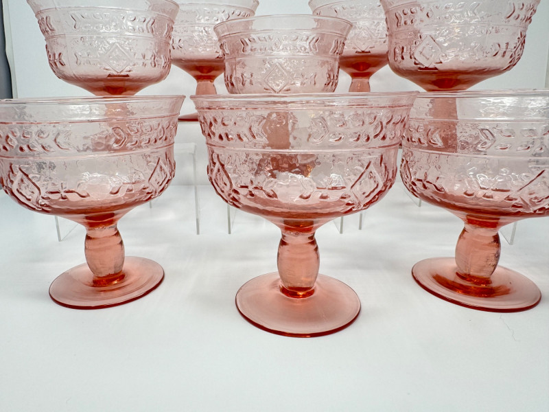 Lot # 4 - Set of 8 Vintage Pink Pressed Glass Sherbet or Dessert Cups - Large