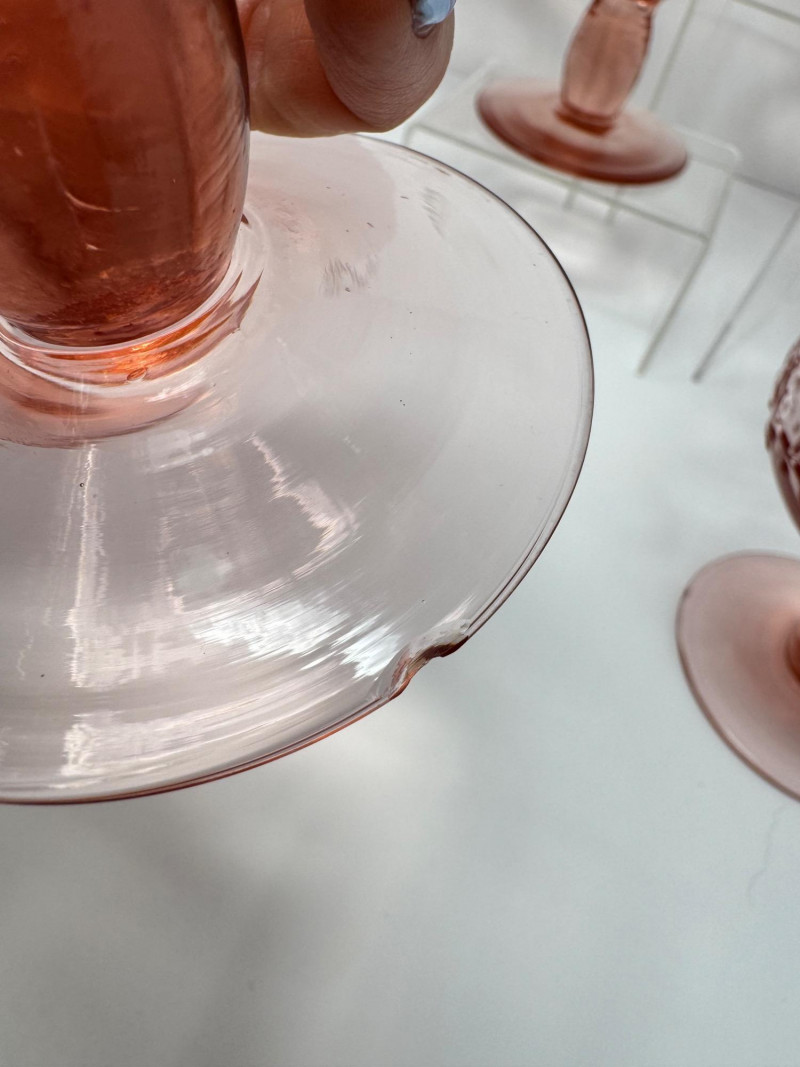 Set of 8 Vintage Pink Pressed Glass Sherbet or Dessert Cups - Large. 5” Tall 5” Wide One Has A Chip On The Base.