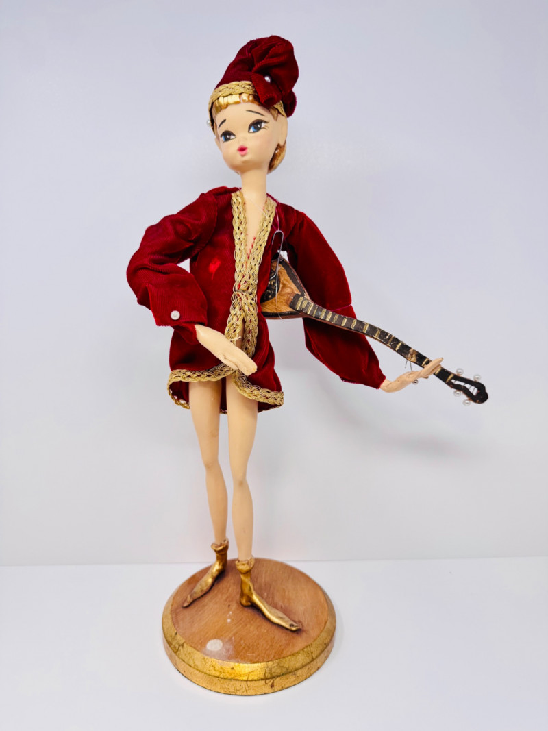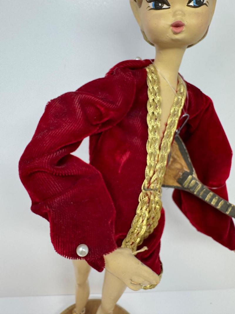 Lot # 15 - Vintage Musician Doll w/ Red Velvet Costume on Wood Base
