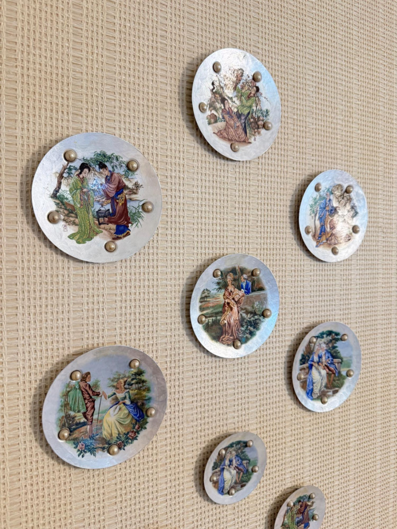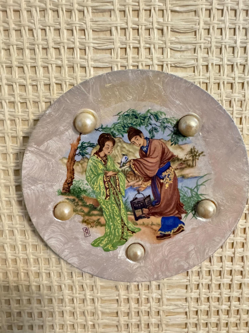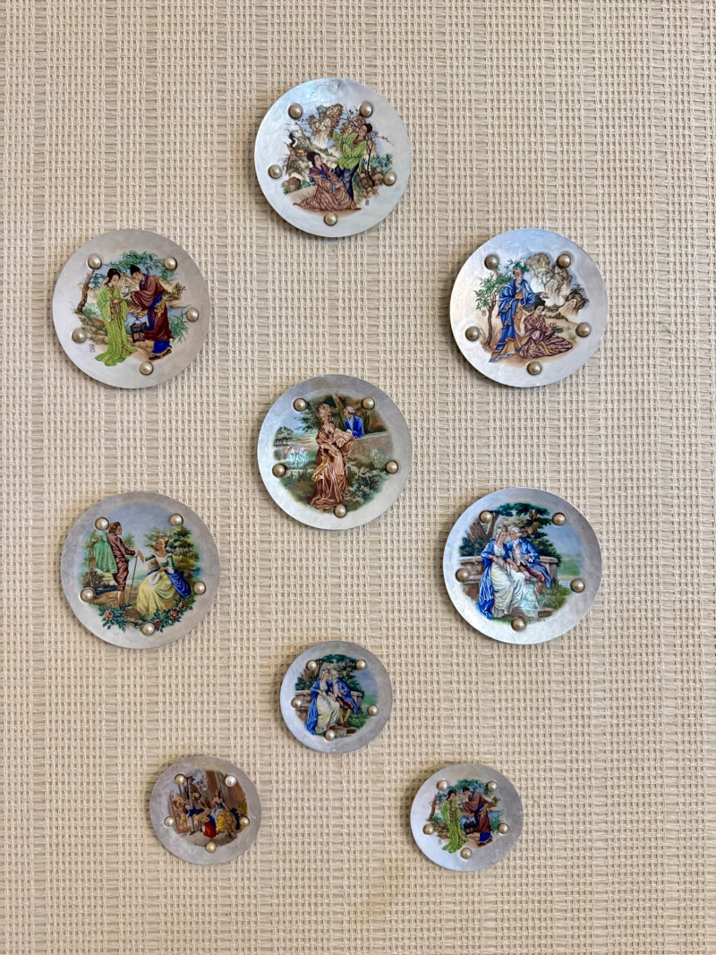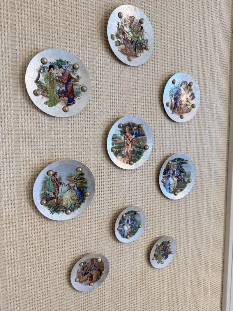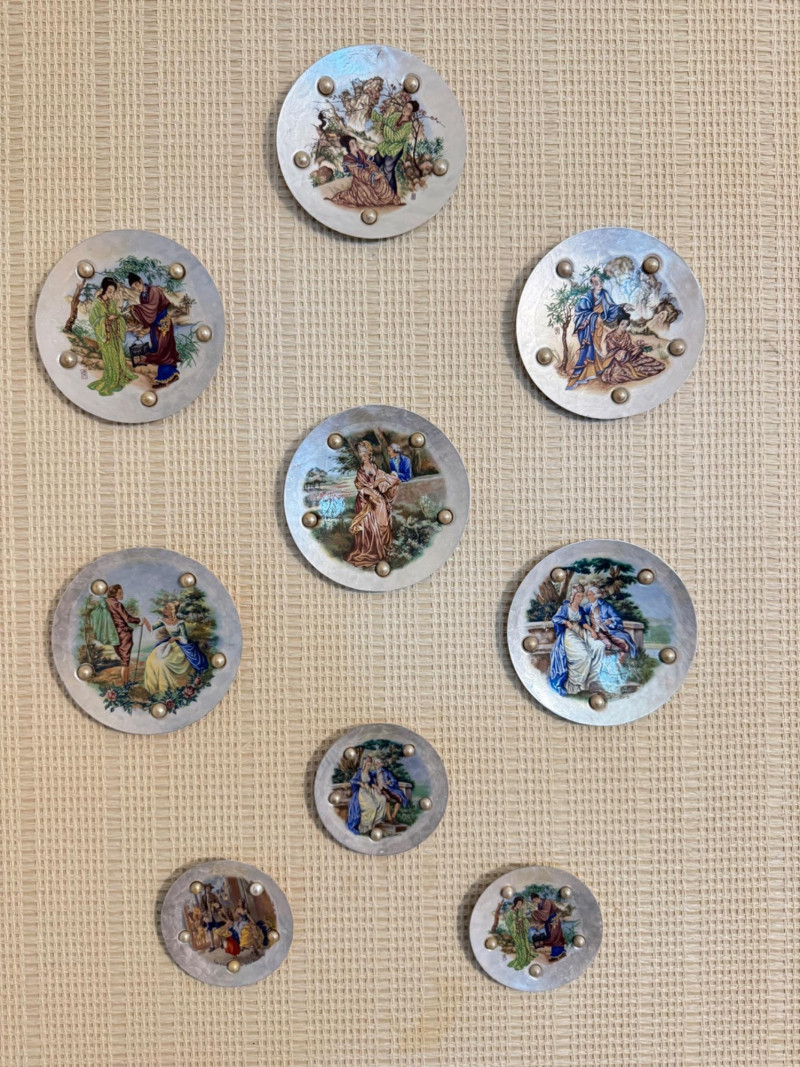 Lot # 16 - Vintage Wall Plaques – Victorian & Asian Scenes on Pearlized Discs