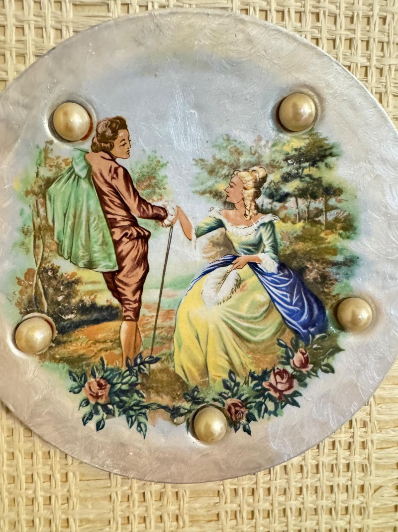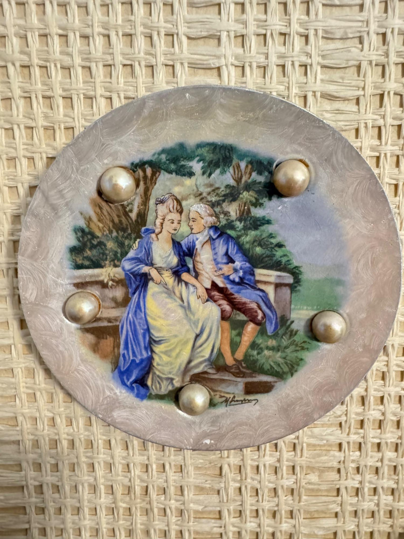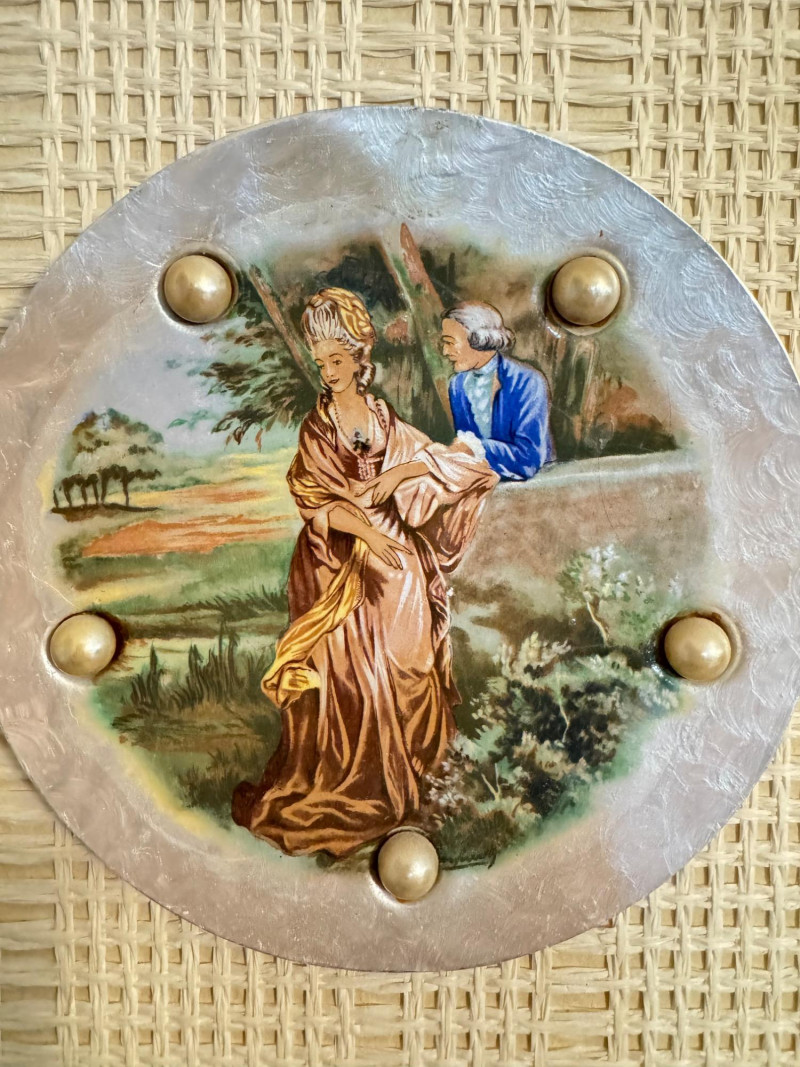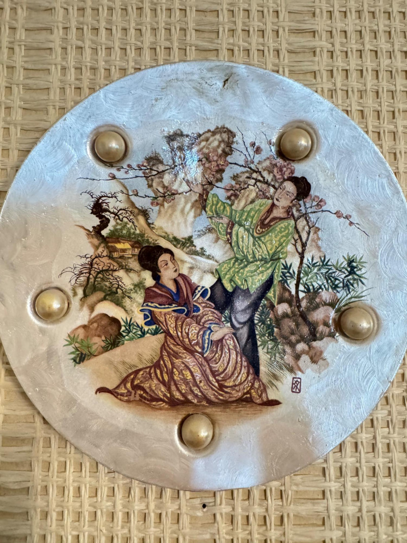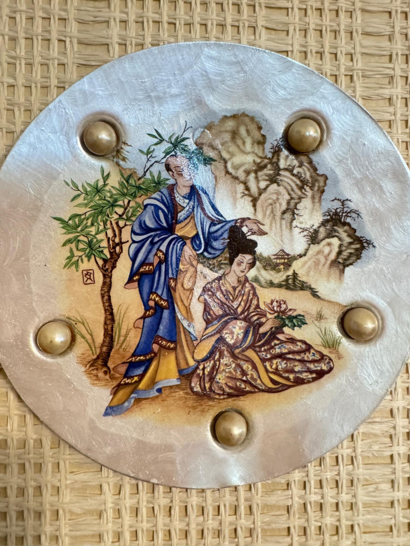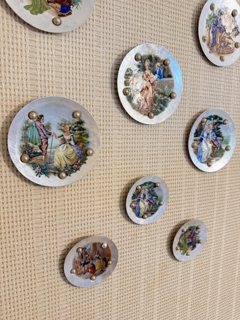 Lot # 16 - Vintage Wall Plaques – Victorian & Asian Scenes on Pearlized Discs