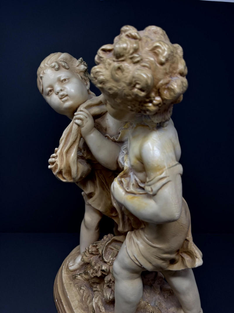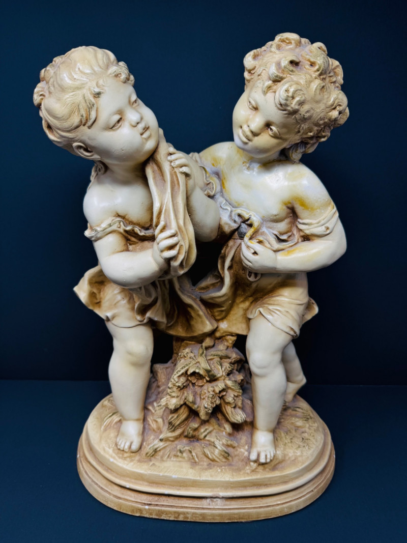 Lot # 18 - Vintage Marwal Mid-Century Boy & Girl Chalkware Statue - Heavy