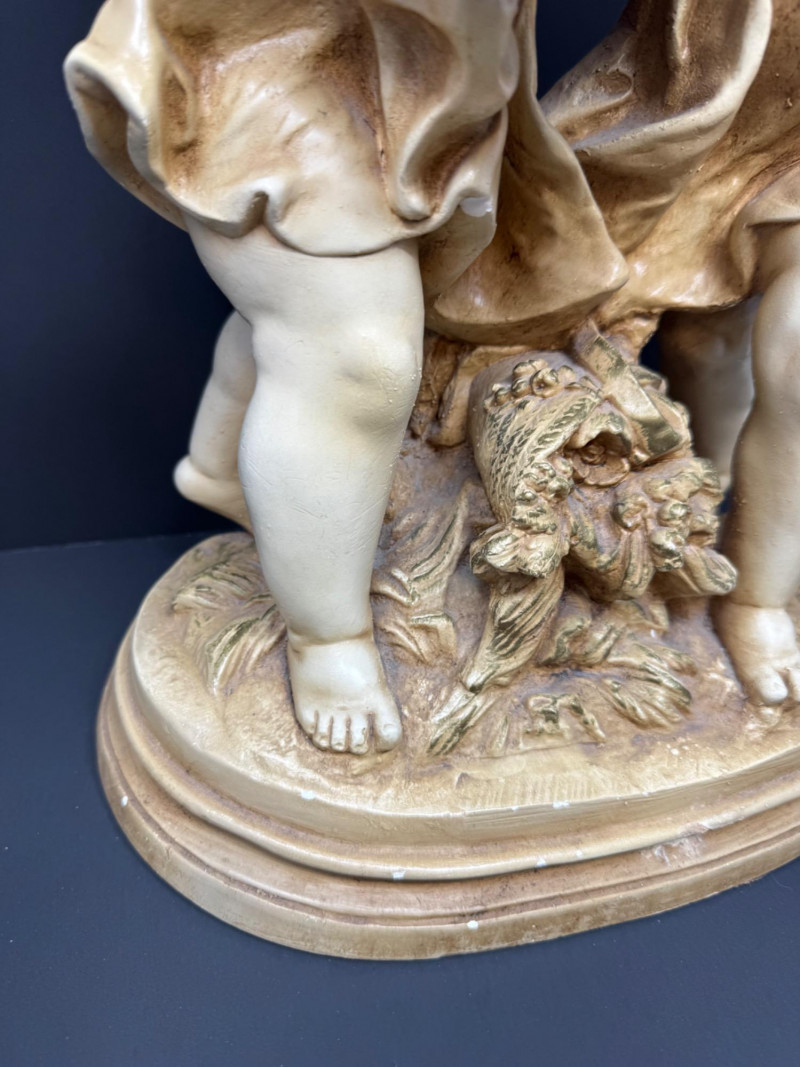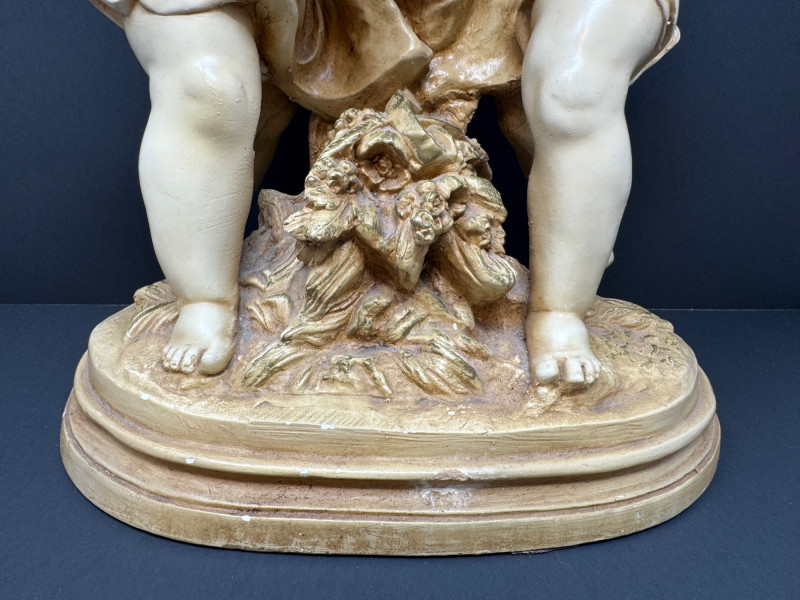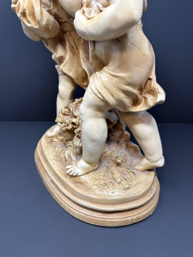 Vintage Marwal Mid-Century Boy & Girl Chalkware Statue - Heavy. 17” Tall 11” Wide