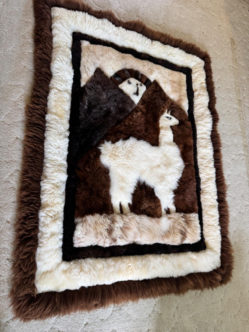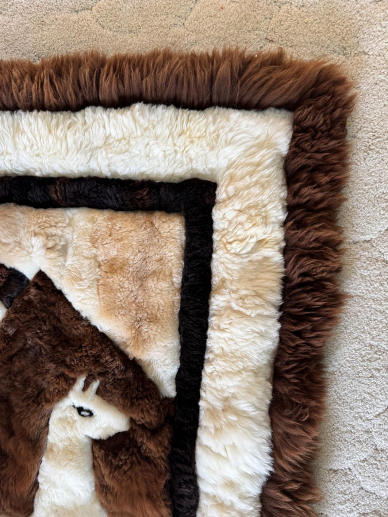 Peruvian Llama Wool Wall Hanging or Rug – Handcrafted Folk Art. 46 x 60”
