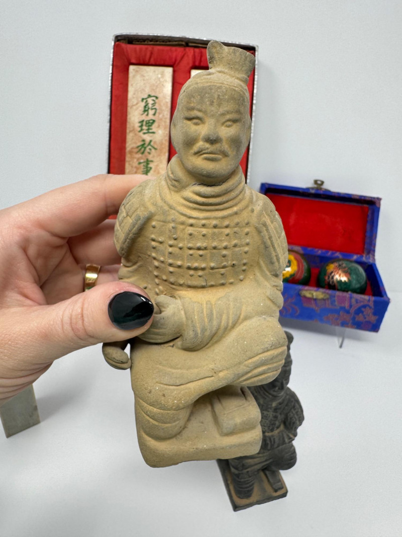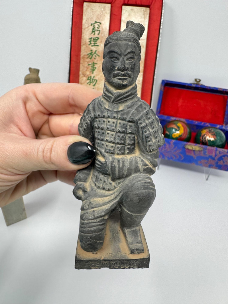 Lot # 48 - Chinese Decor Lot – Warriors, Baoding Balls & Carved Stone Plaques