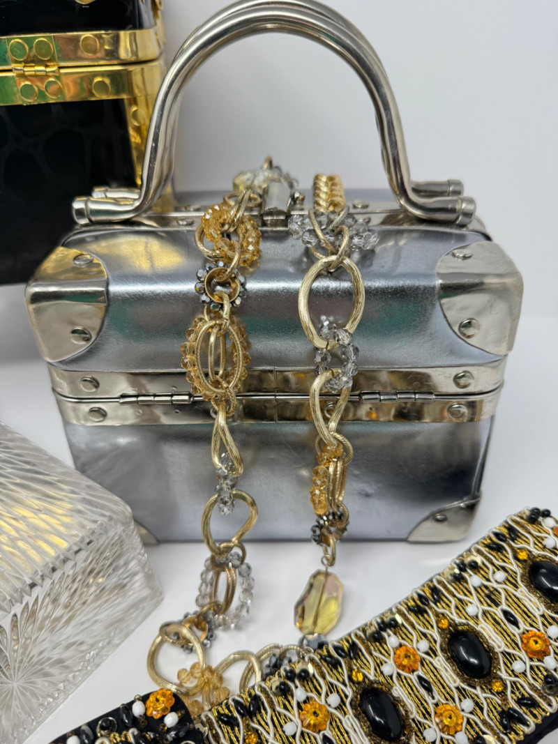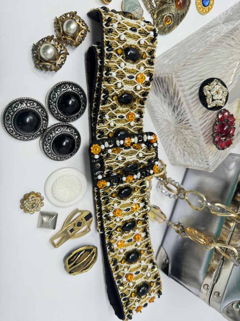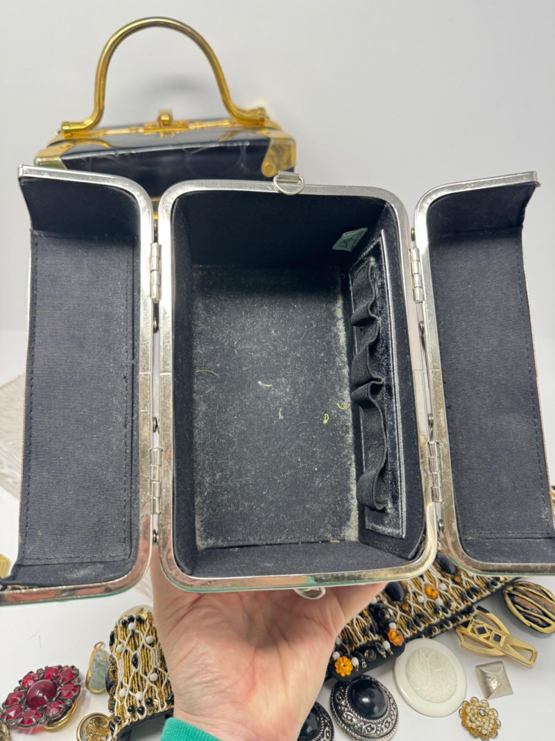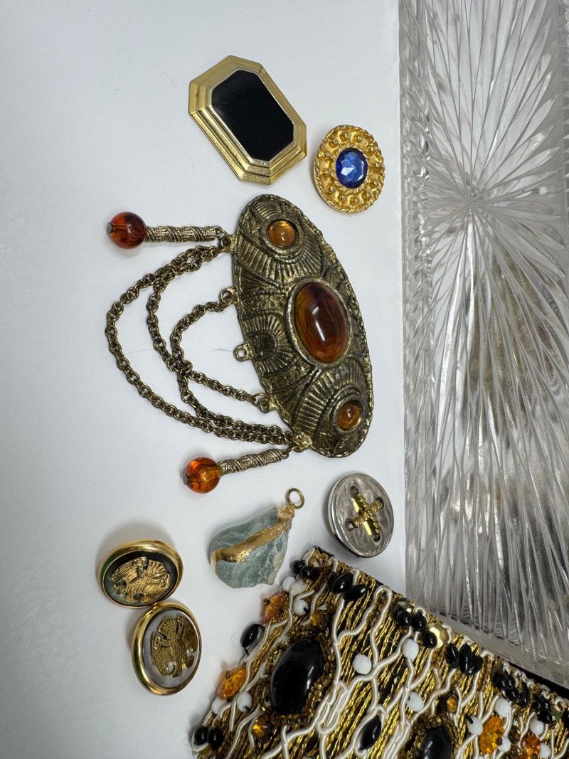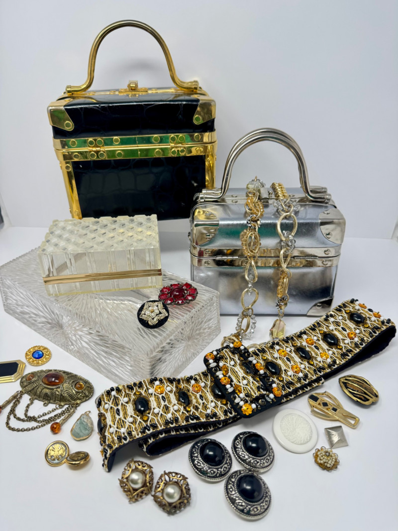 Vintage Vanity Cases, Buttons, Costume Jewelry, Belts, & More.