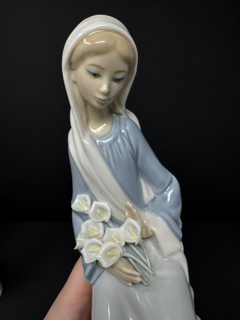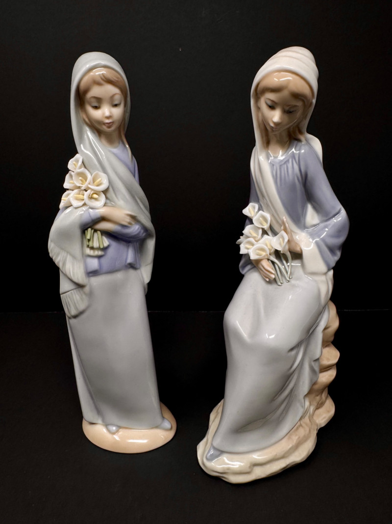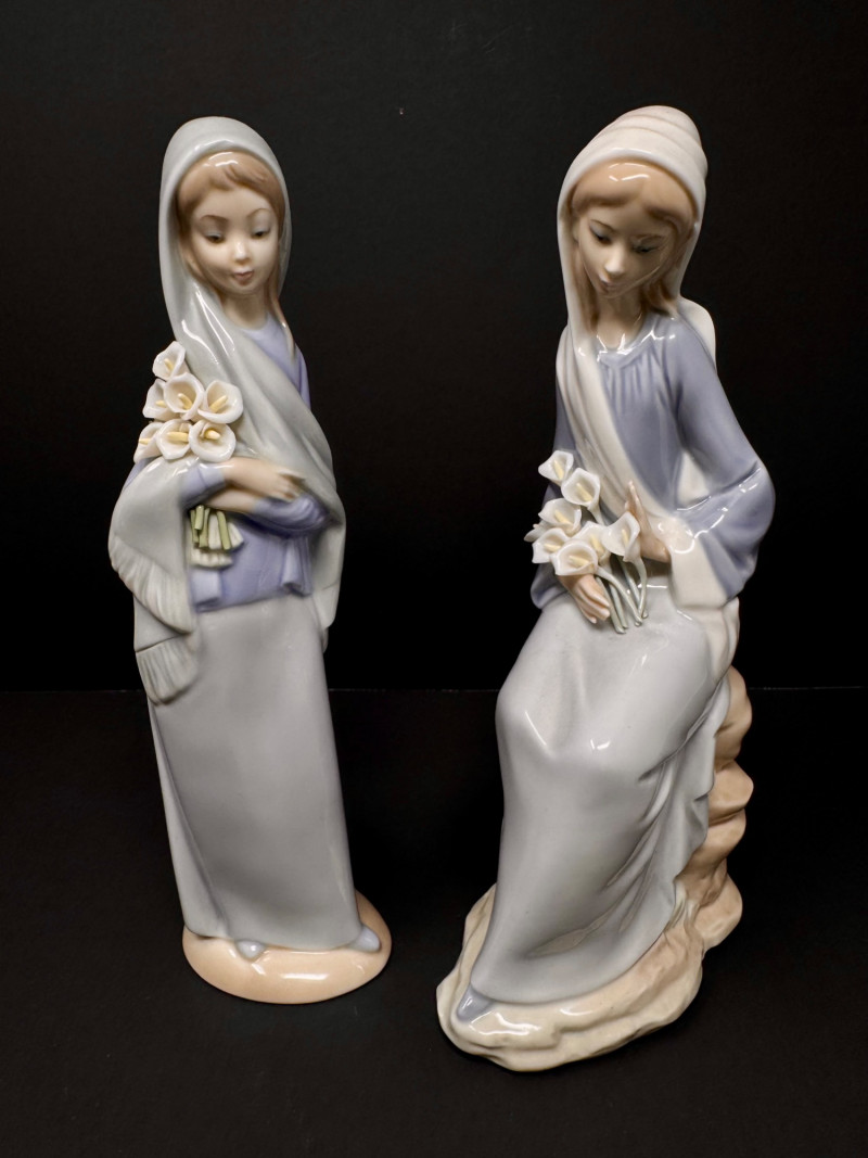 Lot # 64 - Pair of Lladro Porcelain Figurines – Girls w/ Lilies – Made in Spain
