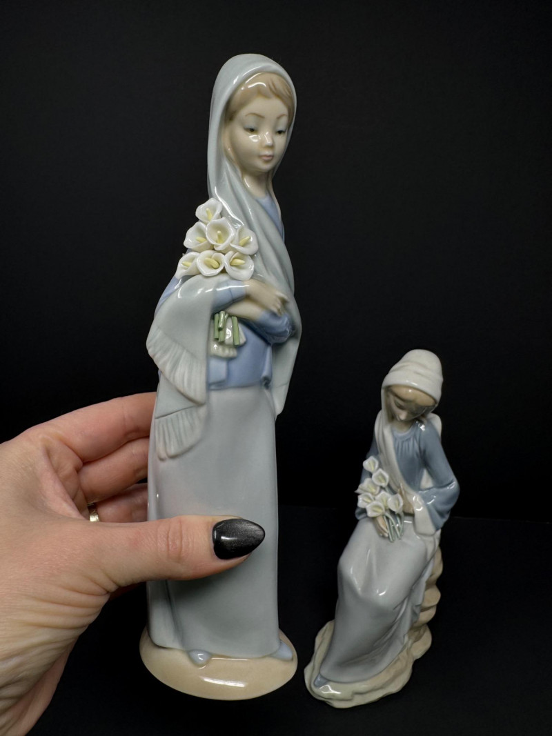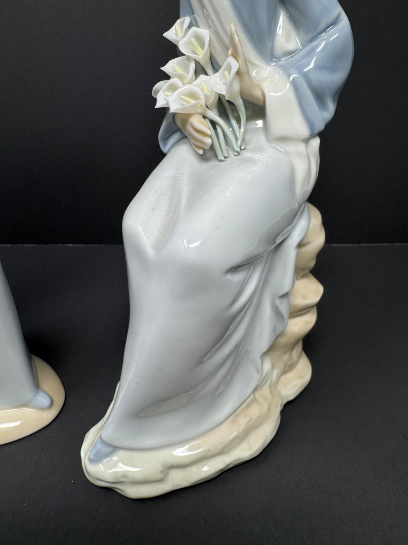 Pair of Lladro Porcelain Figurines – Girls w/ Lilies – Made in Spain. 9-9.5”